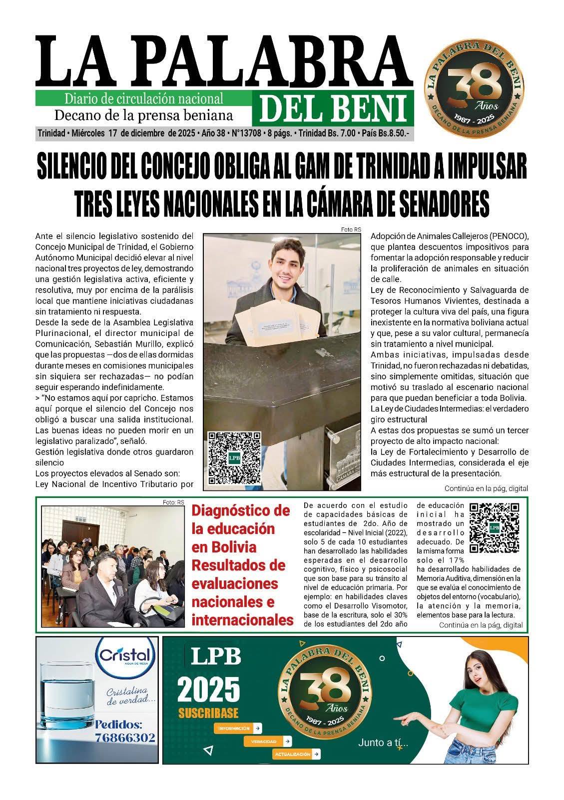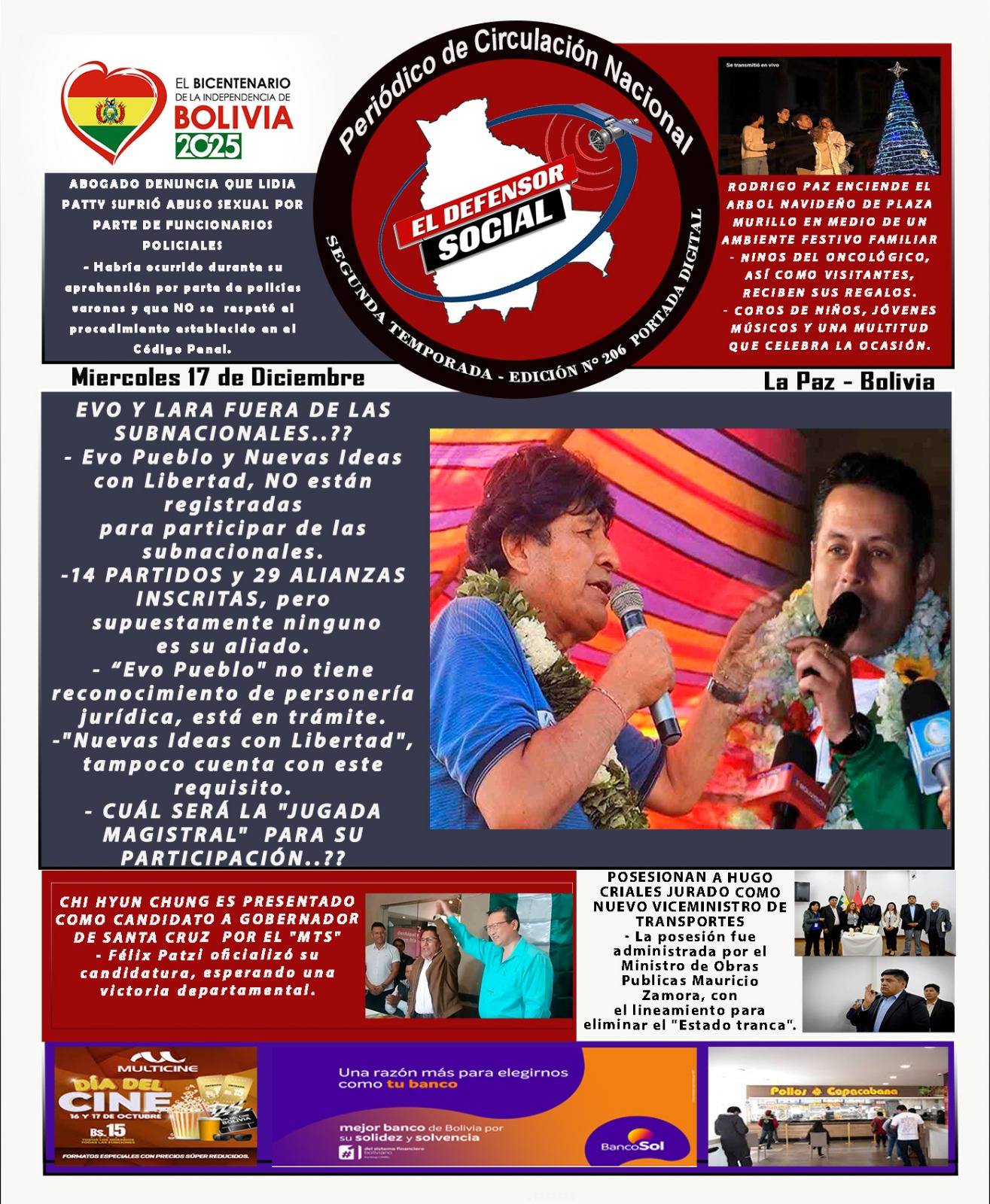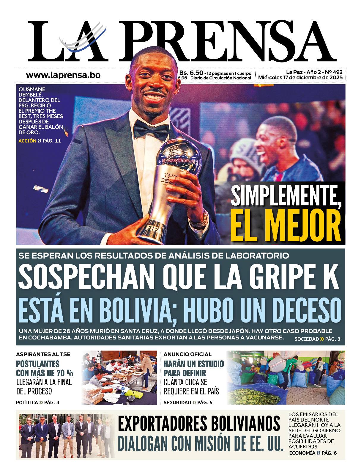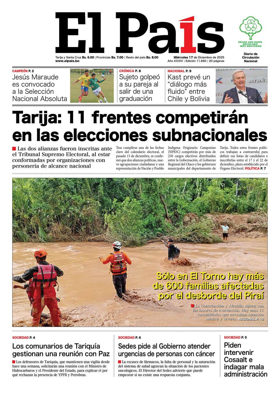 Portadas de los periódicos de Bolivia del miércoles 17 de diciembre del 2025