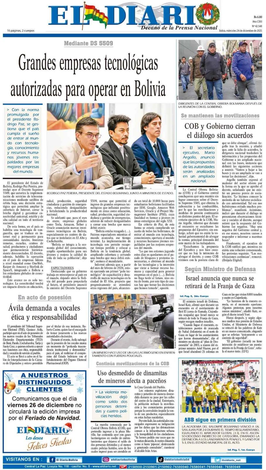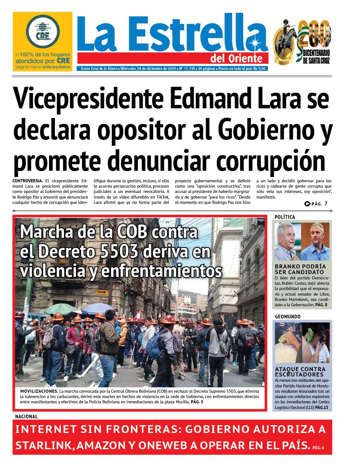 Fuente: El Deber, El Día, Zona Norte, La Palabra, La Razón, El Alteño, La Prensa, Ahora El Pueblo, La Estrella del Oriente, El Mundo, Los Tiempos, La Voz, Contraparte, Andaluz, El Potosí, Correo del Sur, El País, El Periódico, El Diario, Amitel Pres, Opinión, Caja Negra, Novavox.
