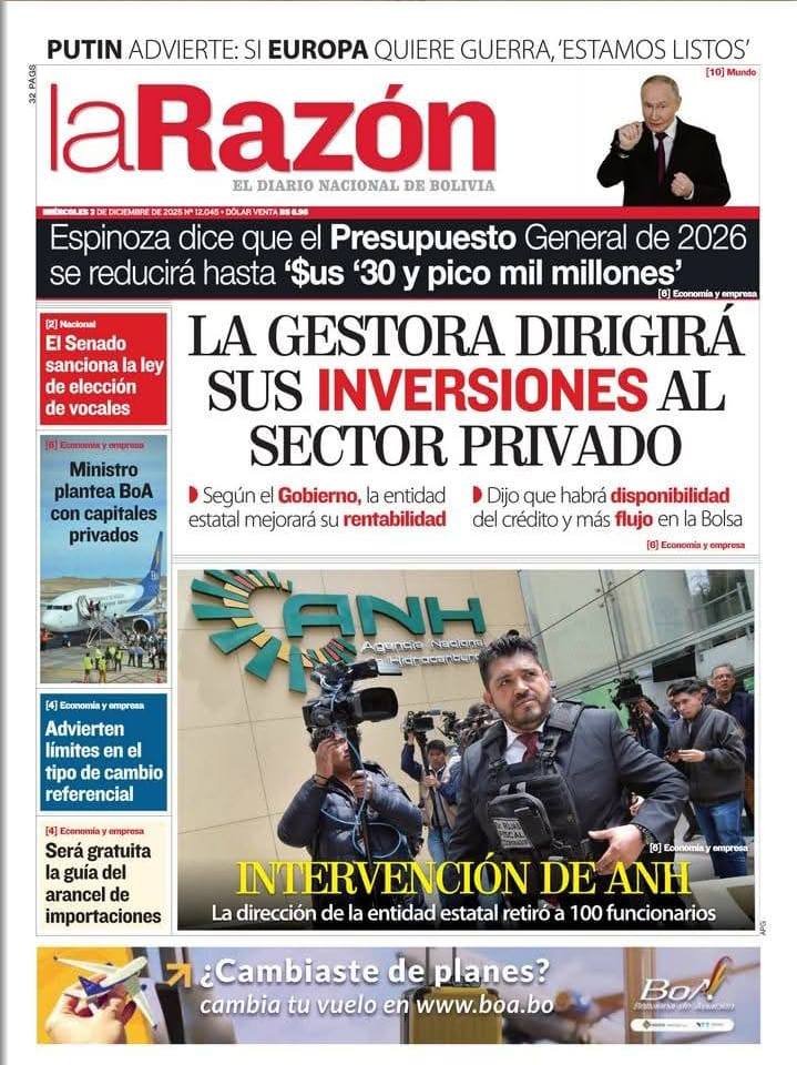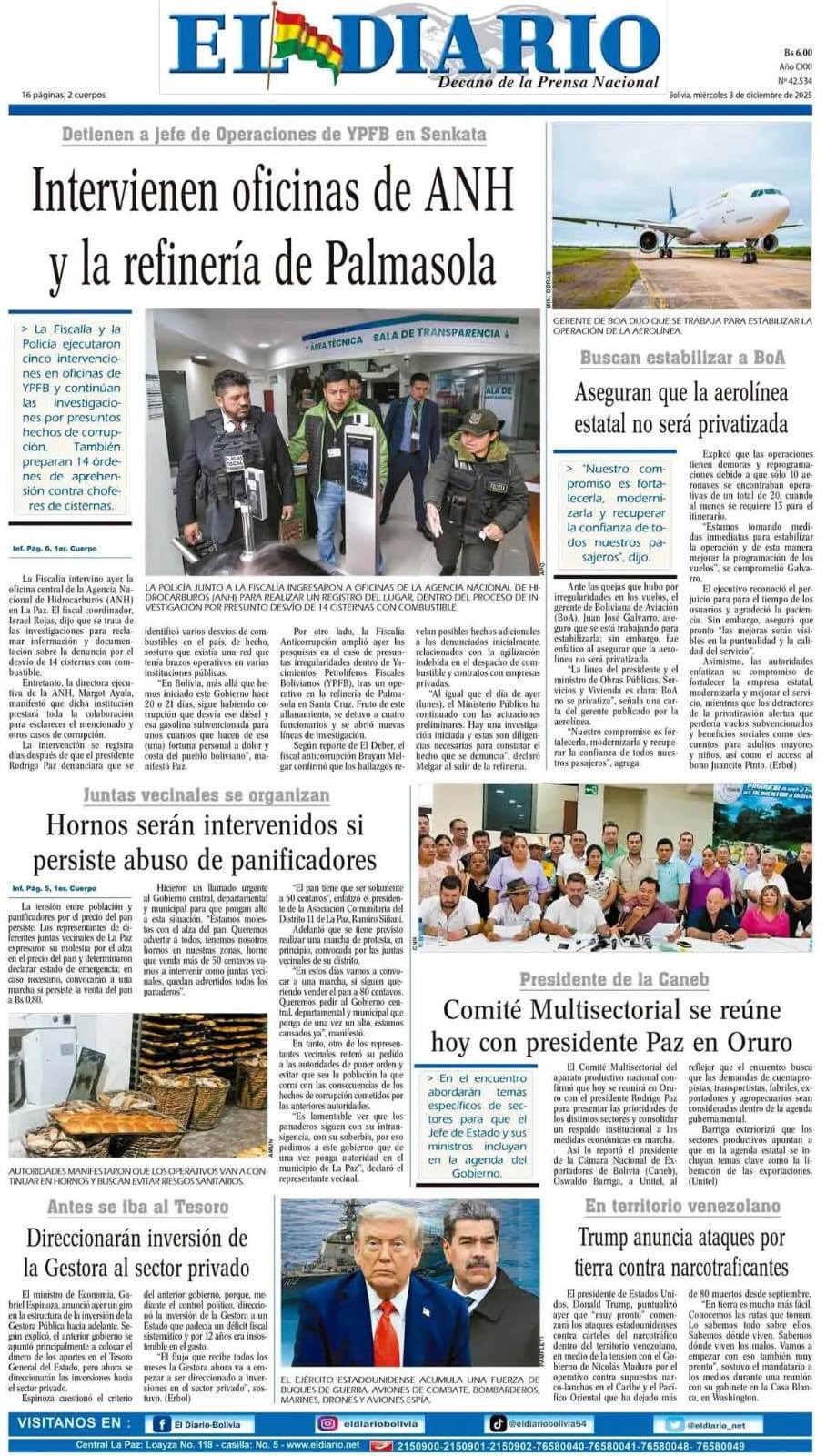 Fuente: El Deber, El Día, Zona Norte, La Palabra, La Razón, La Prensa, Ahora El Pueblo, La Estrella del Oriente, El Mundo, Los Tiempos, La Voz, Contraparte, Andaluz, Correo del Sur, El País, El Periódico, El Diario, Amitel Pres, Opinión, Caja Negra, Novavox.