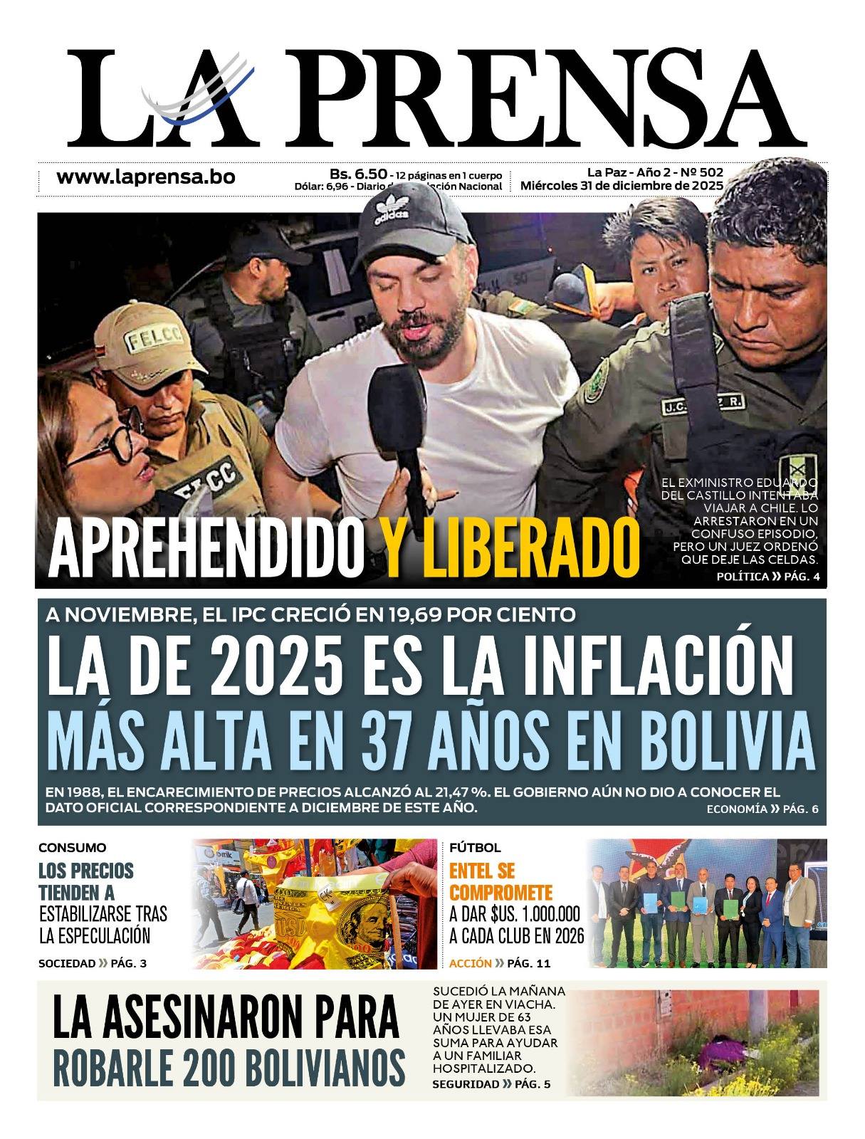 Portadas de los periódicos de Bolivia del miércoles 31 de diciembre del 2025