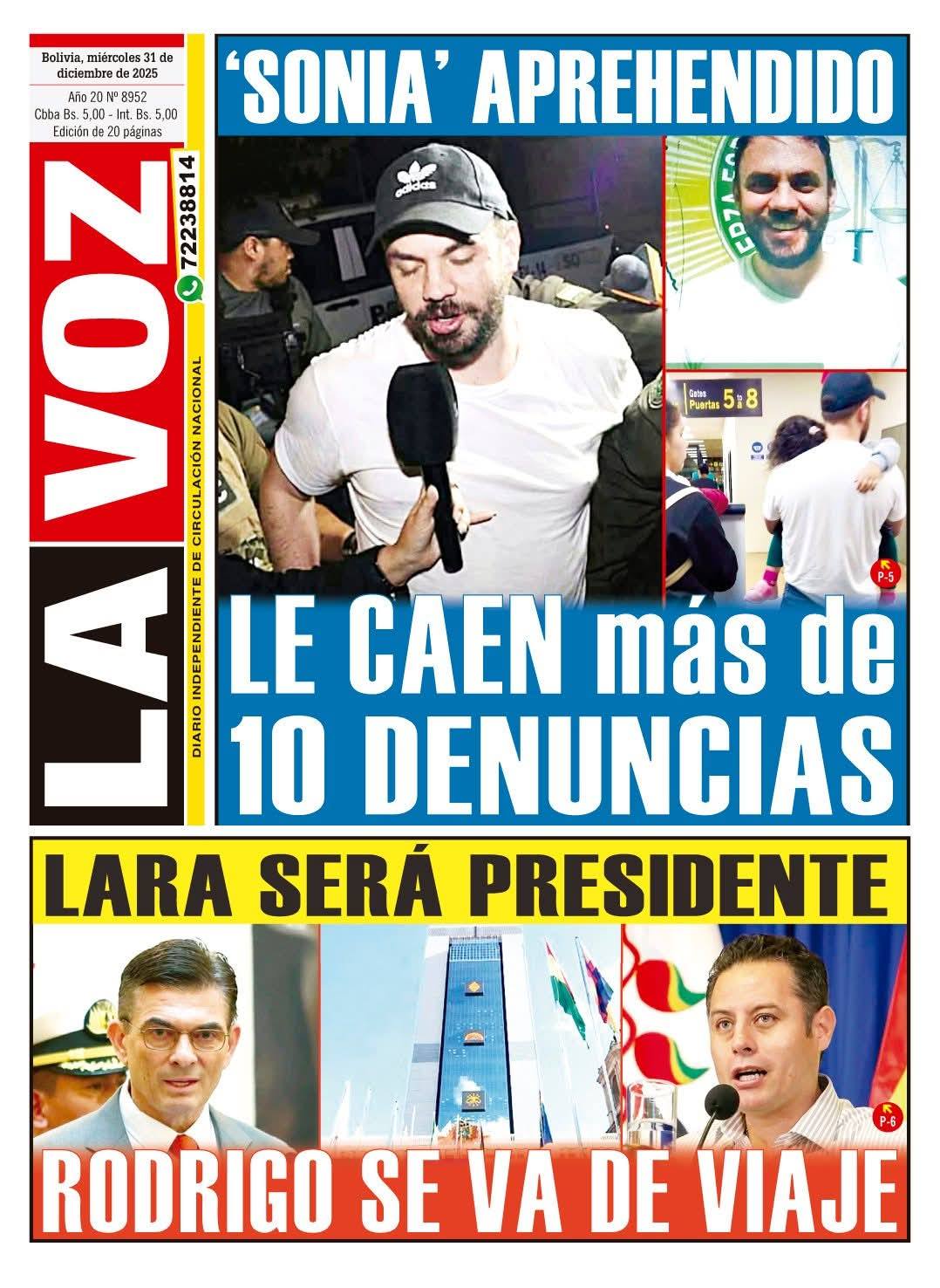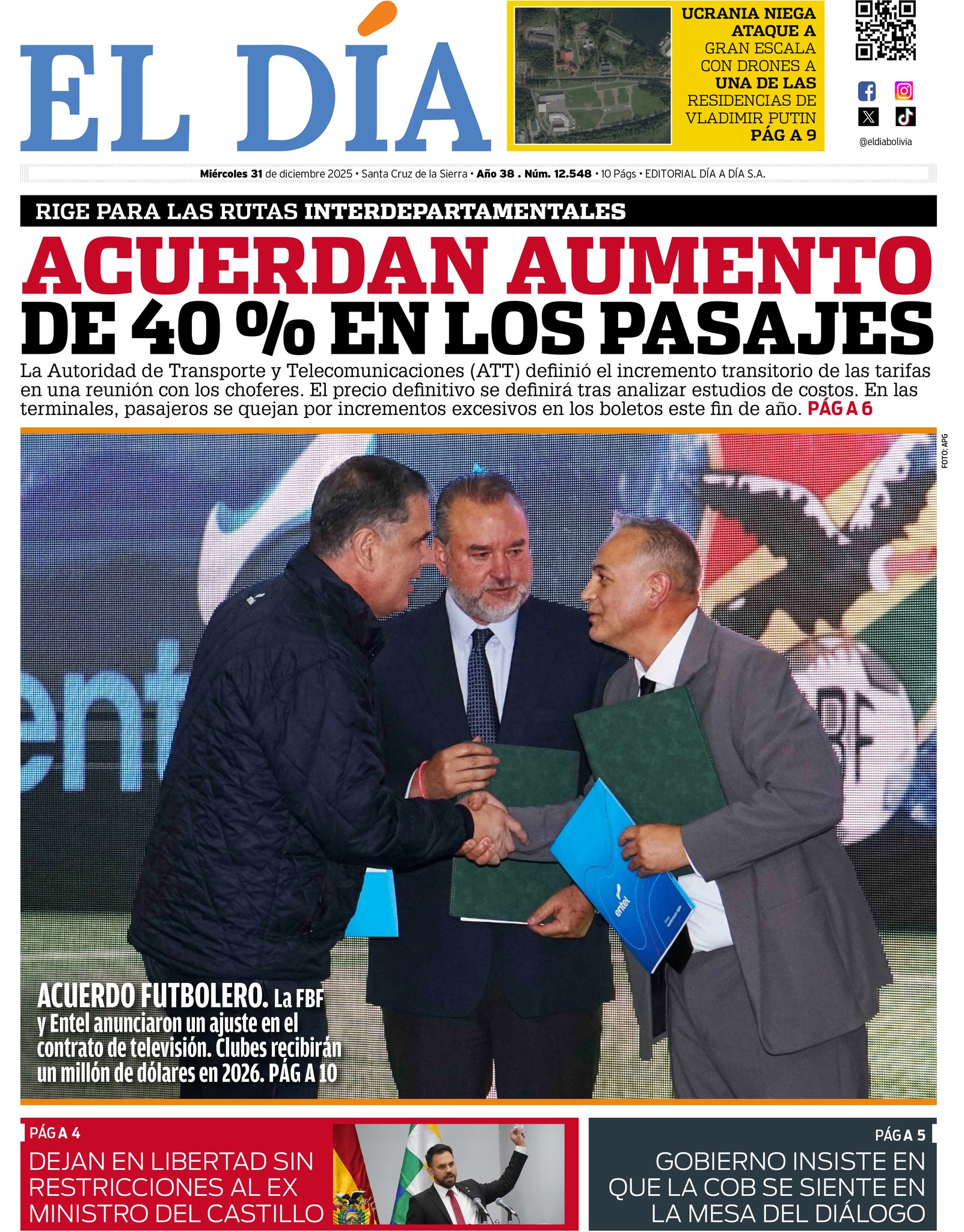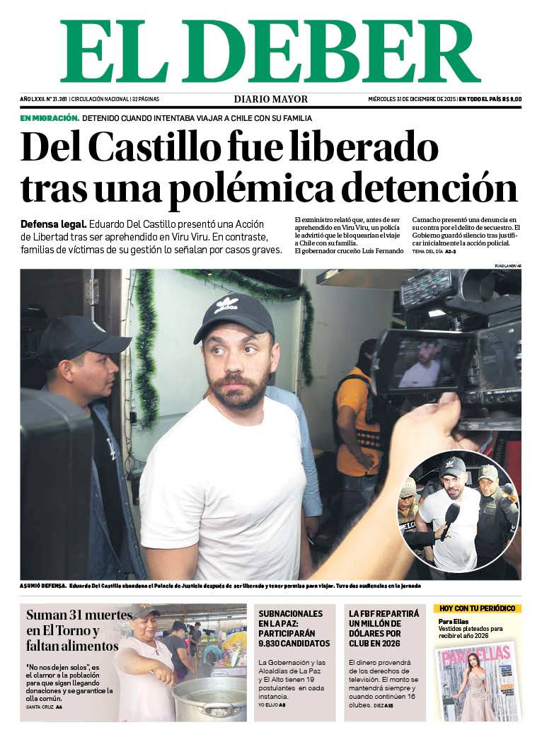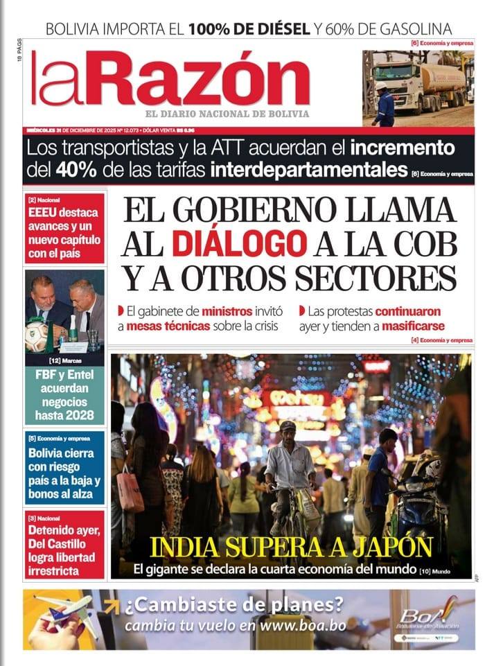 Portadas de los periódicos de Bolivia del miércoles 31 de diciembre del 2025