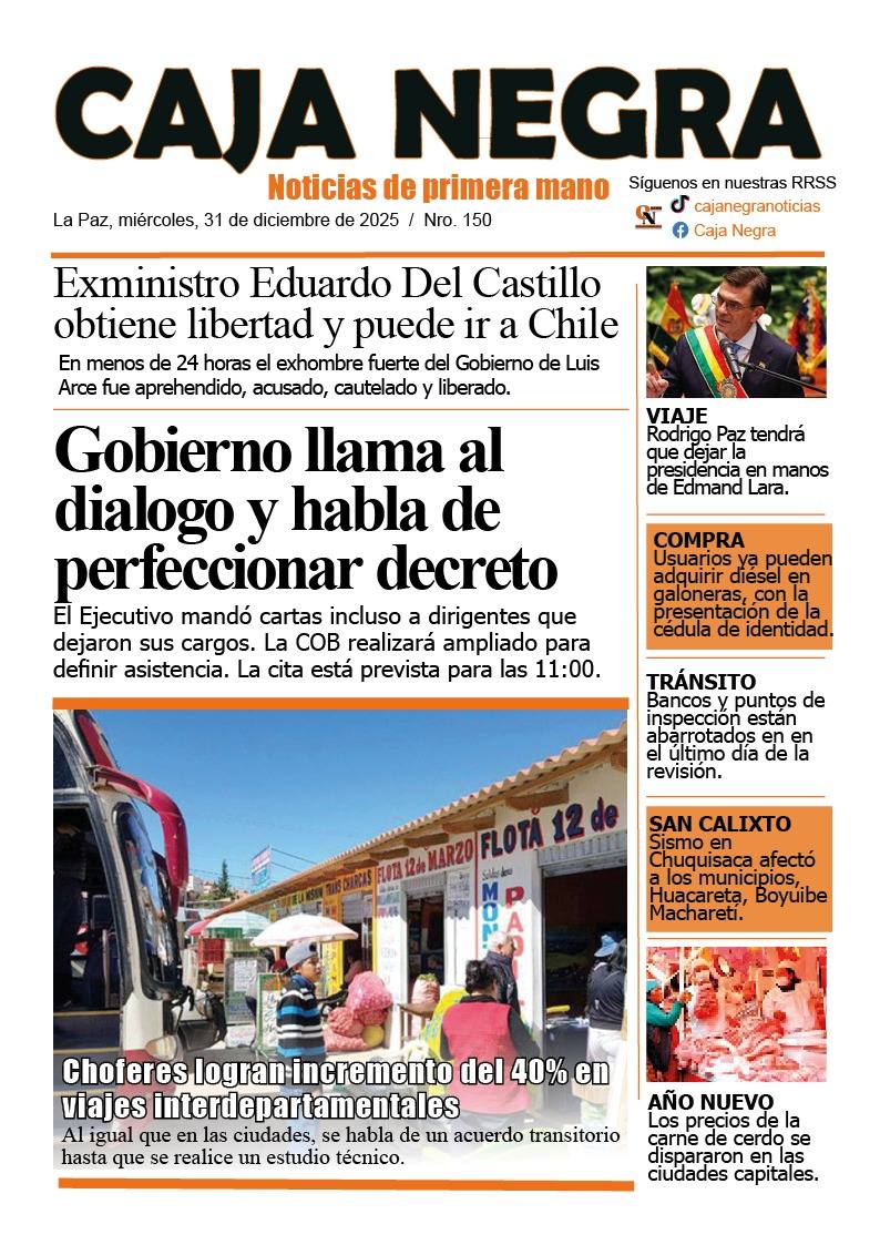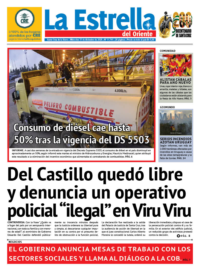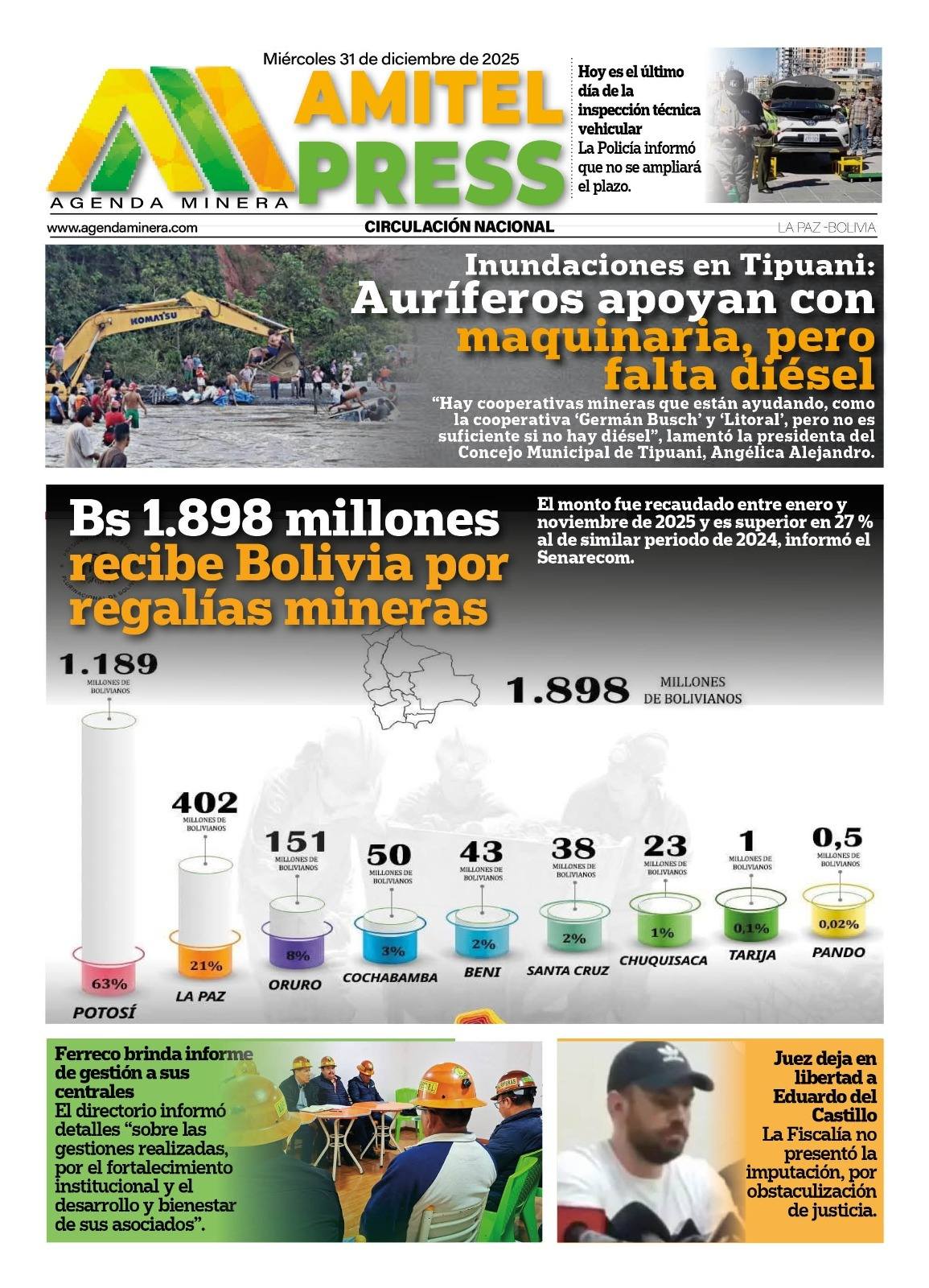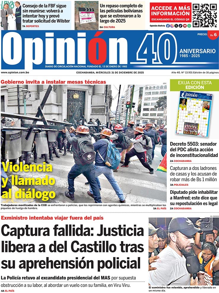 Portadas de los periódicos de Bolivia del miércoles 31 de diciembre del 2025