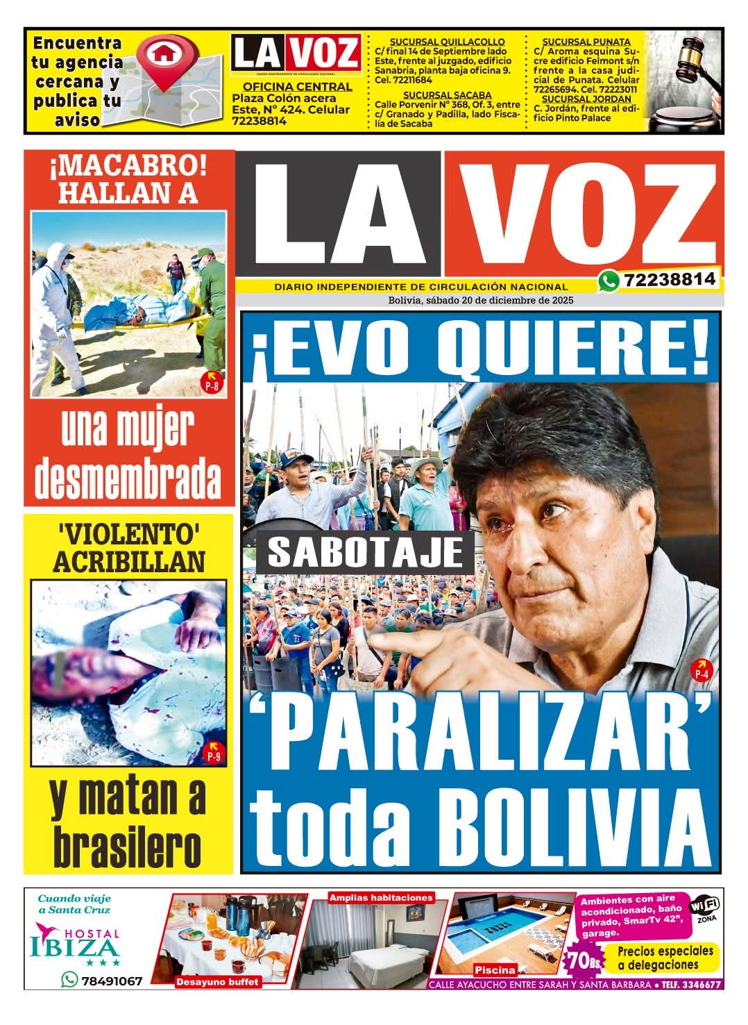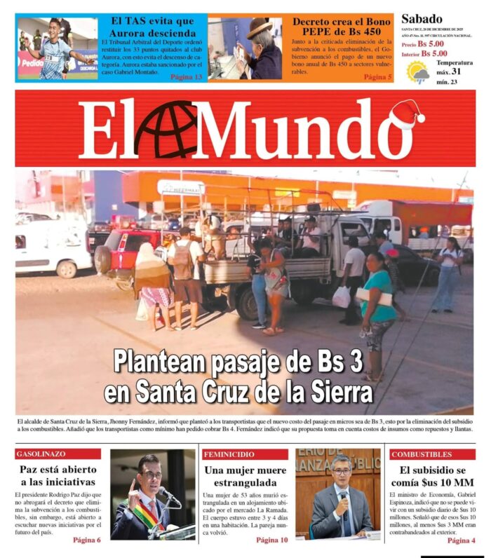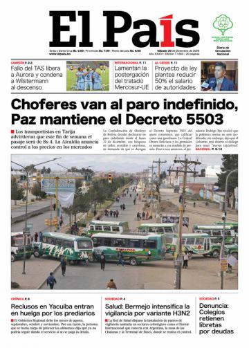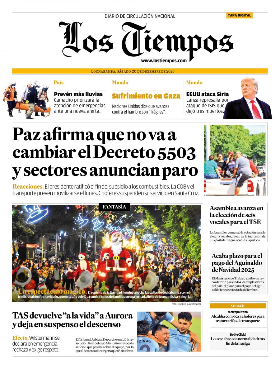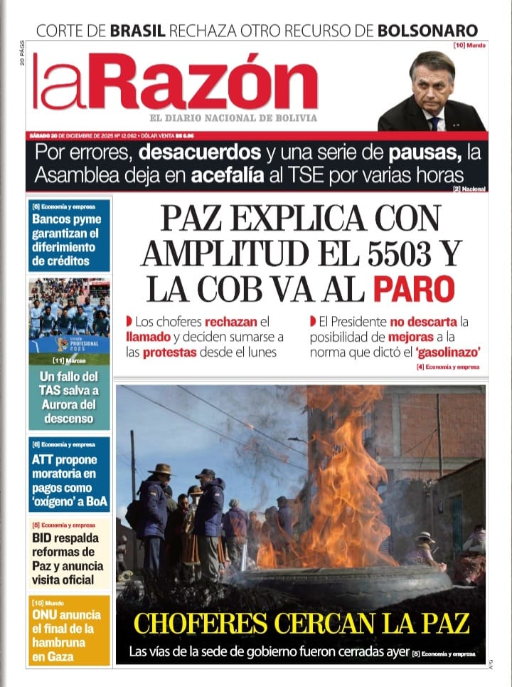 Portadas de los periódicos de Bolivia del sábado 20 de diciembre del 2025Categorías MonitoreoEtiquetas 20/12/2025 Fuente: eju.tv eju.tv
