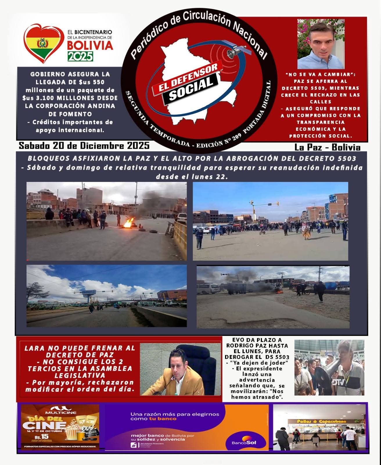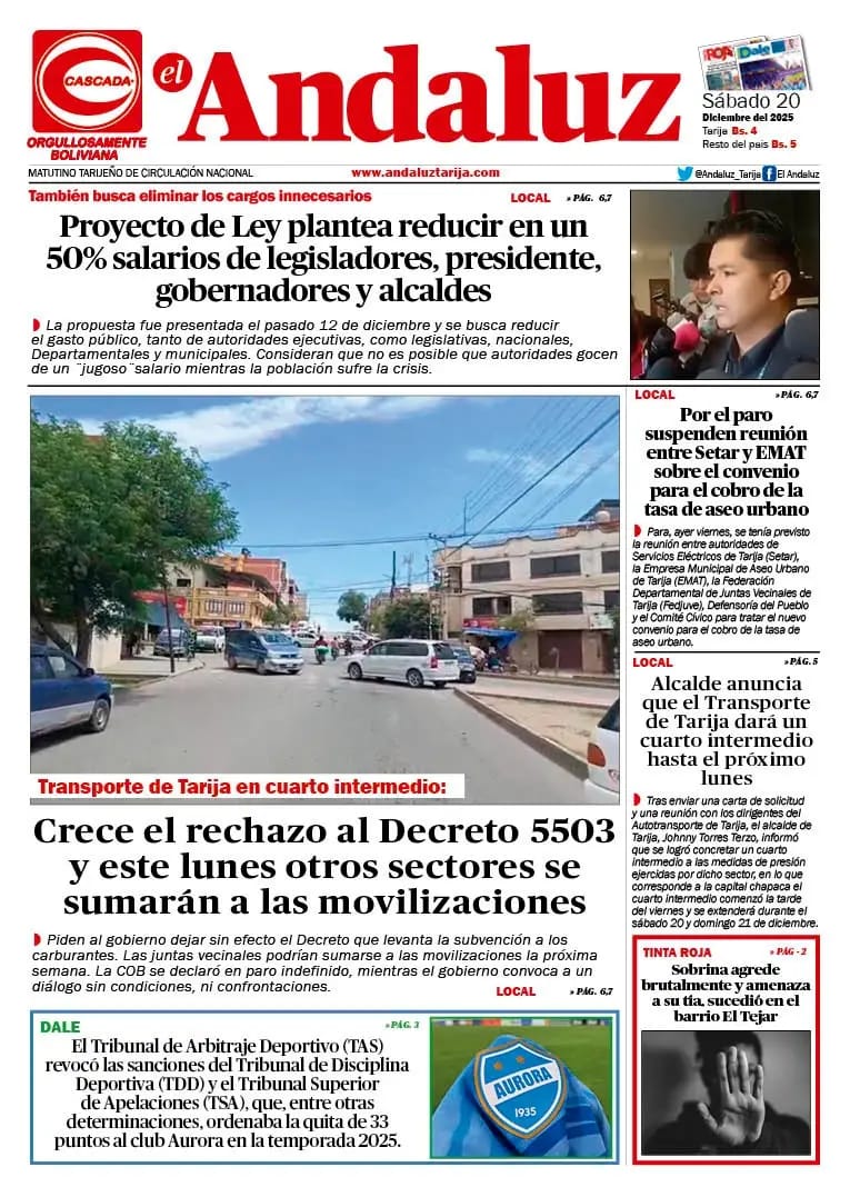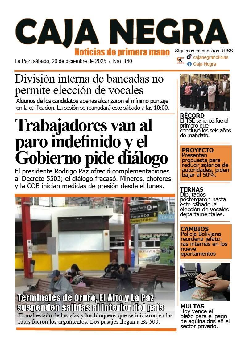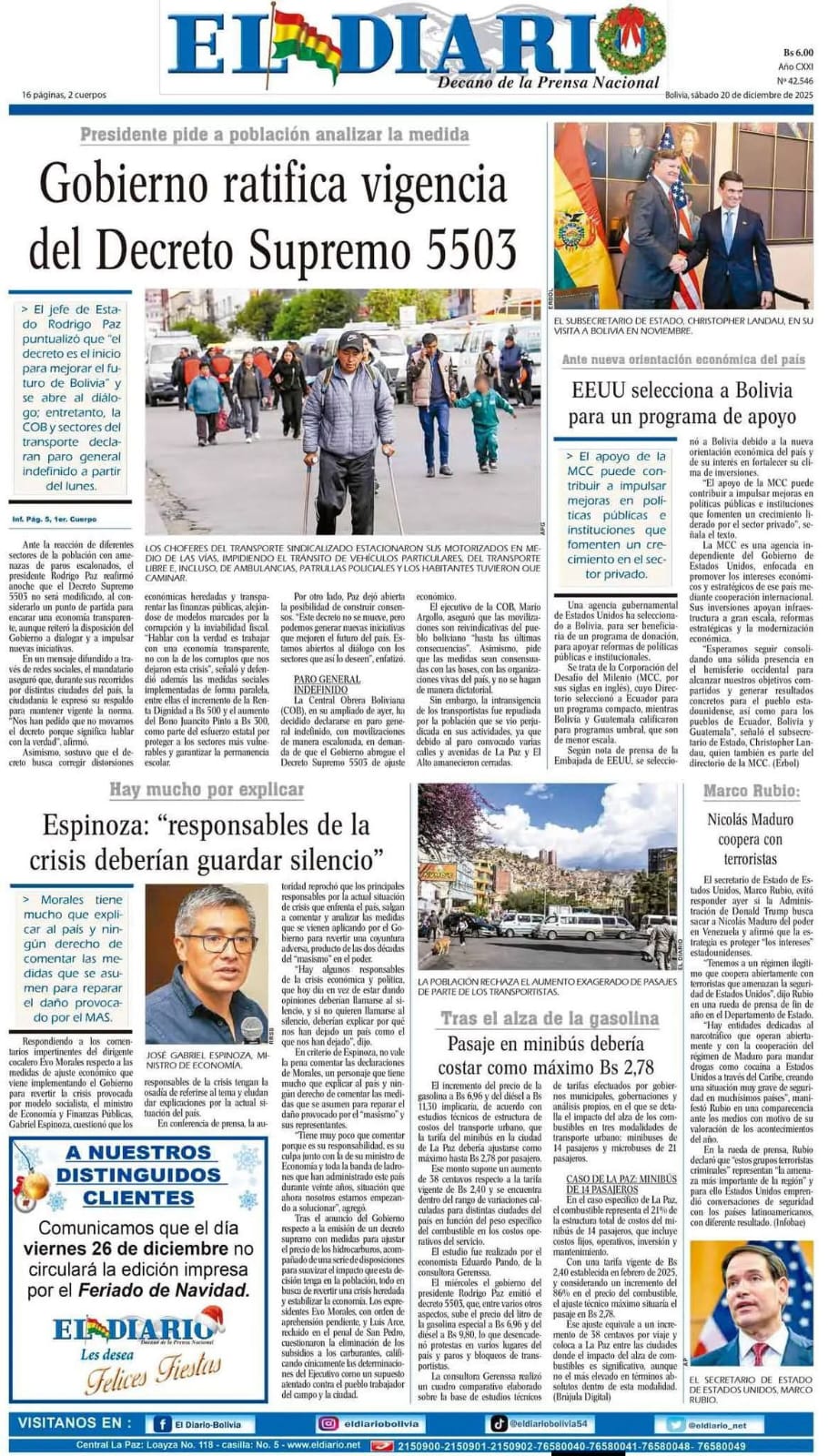 Portadas de los periódicos de Bolivia del sábado 20 de diciembre del 2025Categorías MonitoreoEtiquetas 20/12/2025 Fuente: eju.tv eju.tv