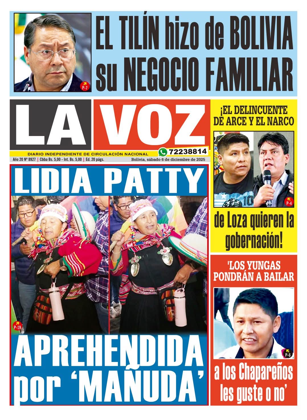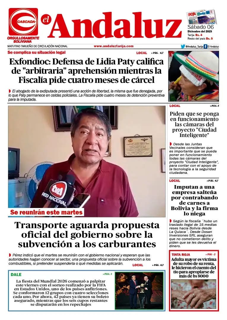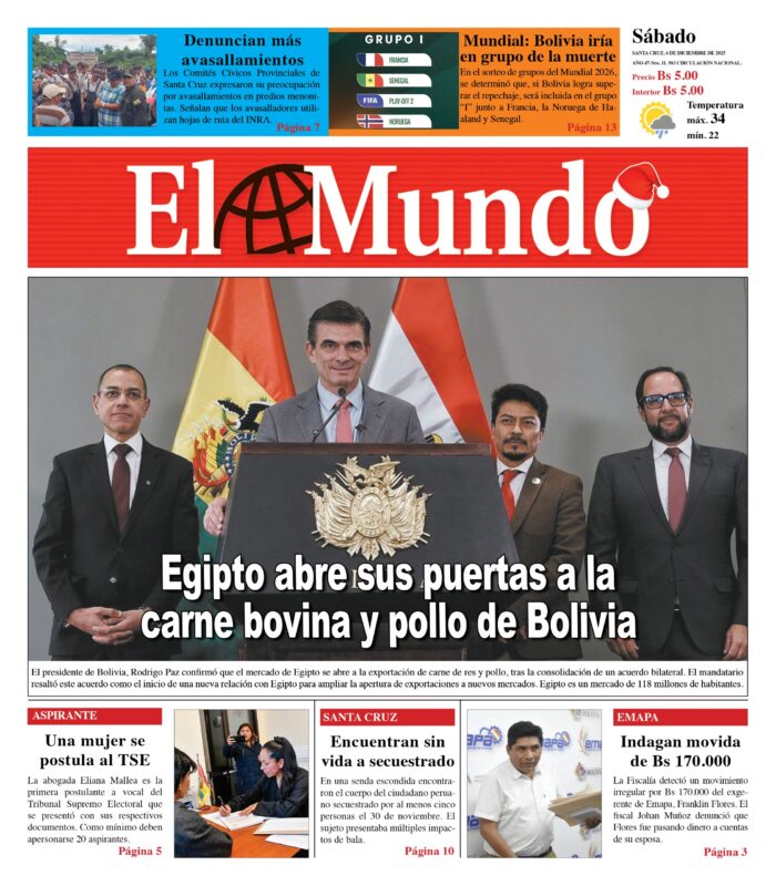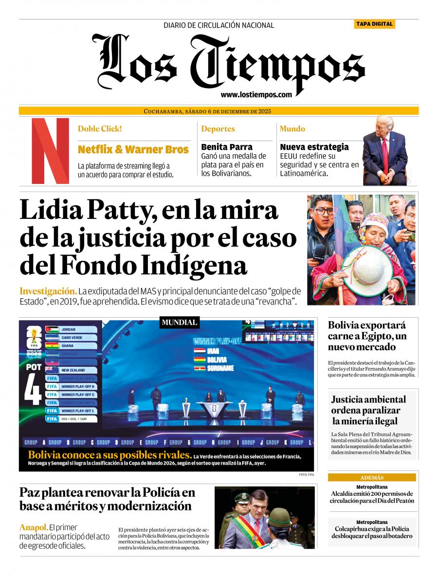 Portadas de los periódicos de Bolivia del sábado 6 de diciembre del 2025