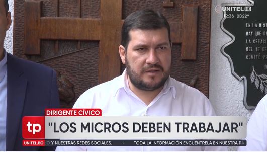El presidente cívico de Santa Cruz, Stello Cochamanidis, pidió a los transportistas volver a brindar su servicio en las calles cruceñas pues consideró que el tema de la eliminación de la subvención de combustible es una situación que todos sabían que se acataría. En esta línea, remarcó que el alcalde de Santa Cruz de la Sierra, Jhonny Fernández, tiene la obligación de ordenar la ciudad.