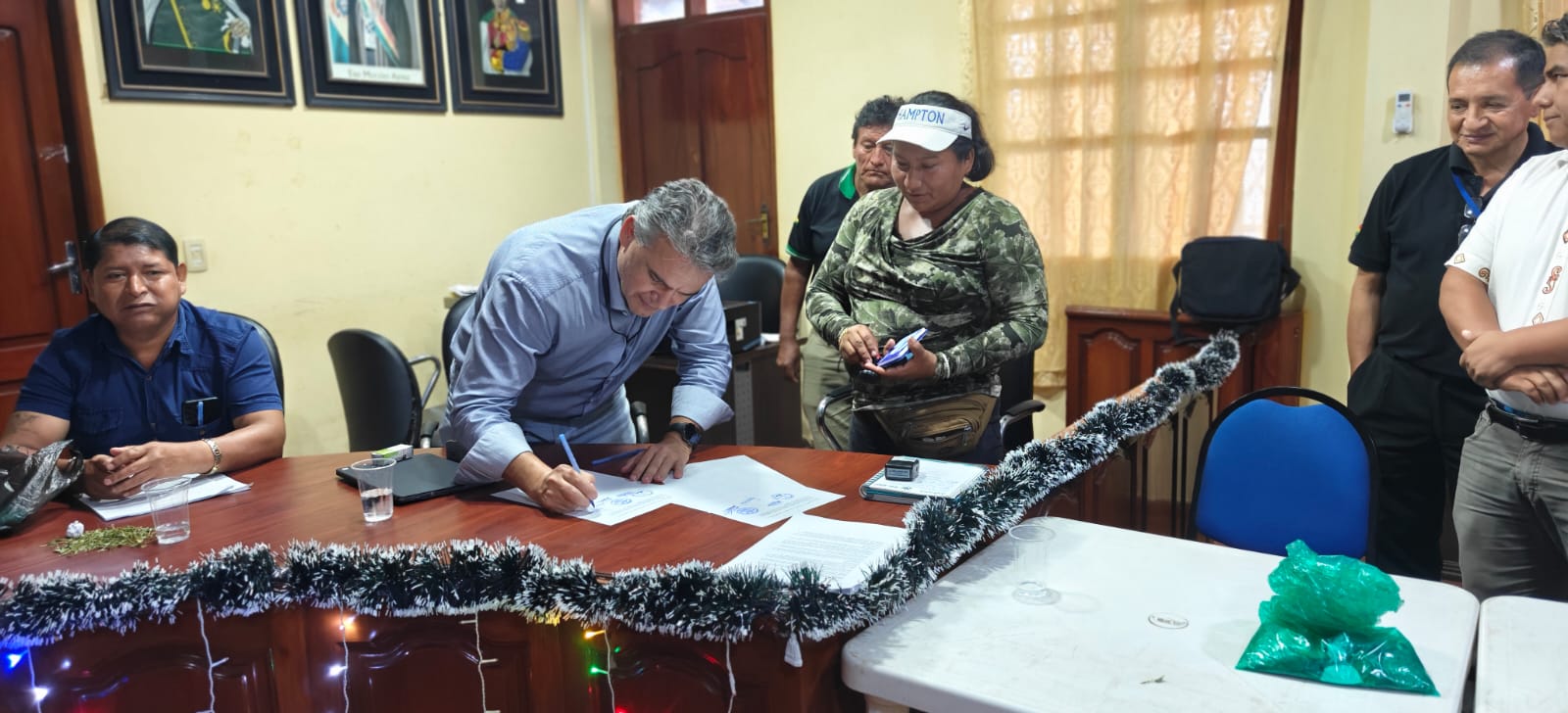 El viceministro Ernesto Justiniano suscribió el preacuerdo con el alcalde Willy Calderón Coca, así como con representantes sociales y productivos para encaminar la resolución del conflicto y avanzar en mesas de diálogo.