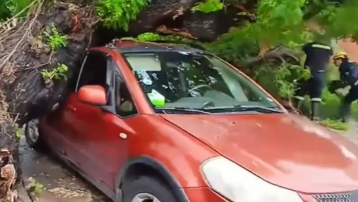 Santa Cruz. Un árbol cayó esta mañana en la calle Ingavi, dejando atrapado a un vehículo. Afortunadamente, el conductor logró salir a tiempo antes de que el motorizado fuera aplastado.