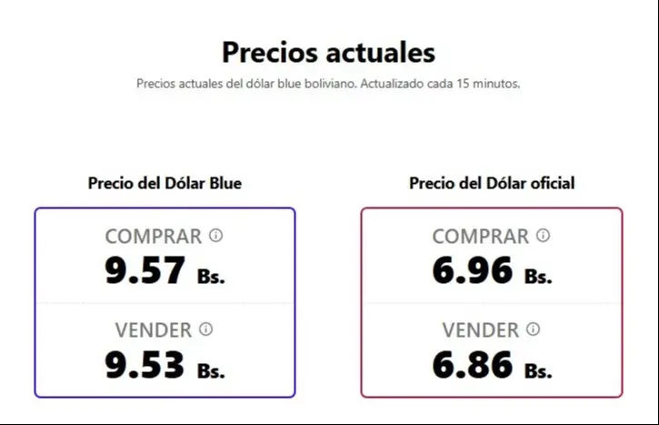 Por otro lado, según datos obtenidos por el sitio https://bolivianblue.net/#google_vignette, el dólar blue boliviano, que se actualiza cada 15 minutos, cotiza este martes una variación, ya que a la compra se registra en 9.57 (BOB) y 9.53 (BOB) para la venta.