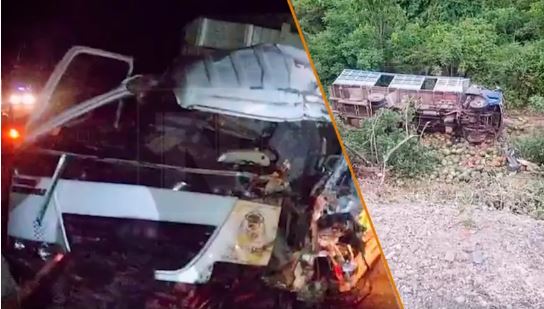Según los primeros reportes, dos camiones colisionaron de frente, destruyendo completamente la parte delantera de ambos vehículos.