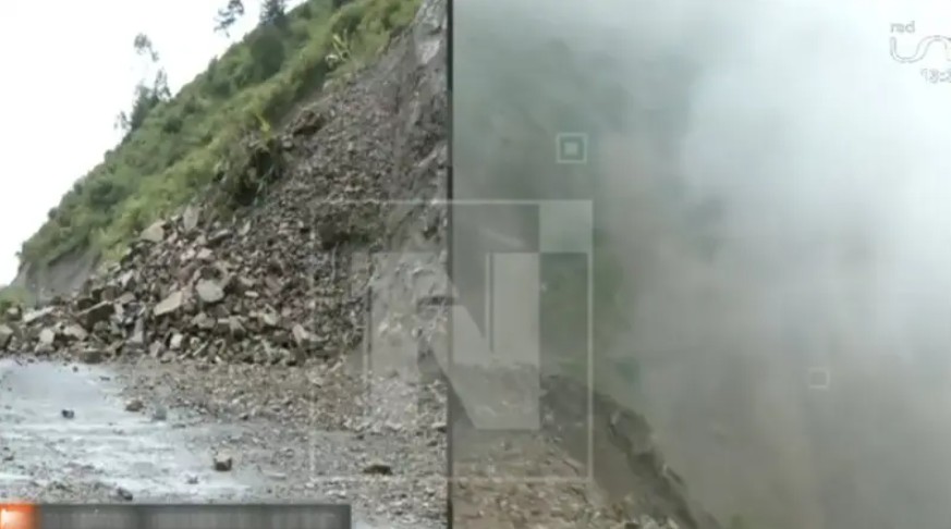 El acceso quedó completamente interrumpido tras un deslizamiento de gran magnitud, ocasionado por las persistentes e intensas lluvias que azotan la zona. La plataforma vial cedió de forma repentina, provocando la caída de toneladas de tierra y rocas hacia el vacío y dejando un profundo corte en la vía.