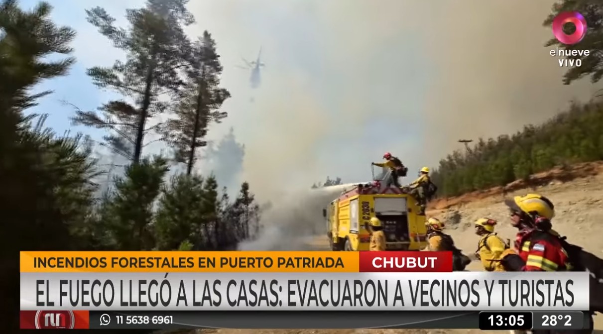En Chubut, un incendio iniciado el lunes en la zona turística de Puerto Patriada afectó viviendas y vehículos y forzó la evacuación preventiva de residentes y visitantes. El intendente de El Hoyo, César Salamín, confirmó que no se registraron personas heridas. En el lugar trabajan brigadistas, bomberos y fuerzas de seguridad, con apoyo de aviones hidrantes.