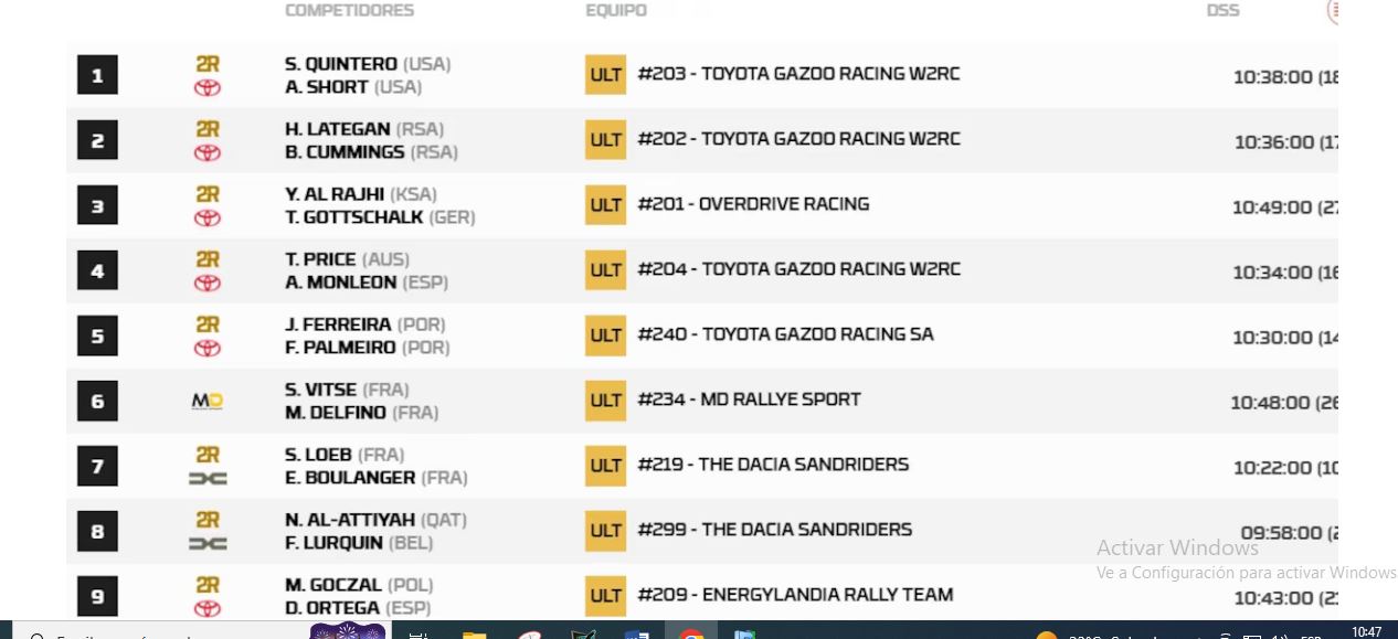 En coches, los Toyota han dado un verdadero recital. Quintero ha ganado la etapa, pero Al Attiyah es quien se pone líder de la categoría después de minimizar daños en una etapa complicada por las zonas rocosas. De hecho, eso mismo hizo que el día se le complicara a un Carlos Sainz que pinchó en dos ocasiones. El madrileño se quedó fuera del Top 10 en esta segunda etapa. En la clasificación general, cierra ese mismo cupo como el español más rápido.