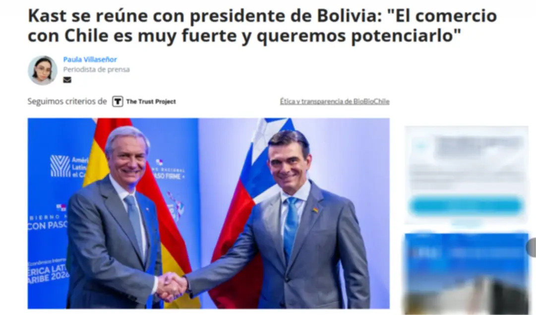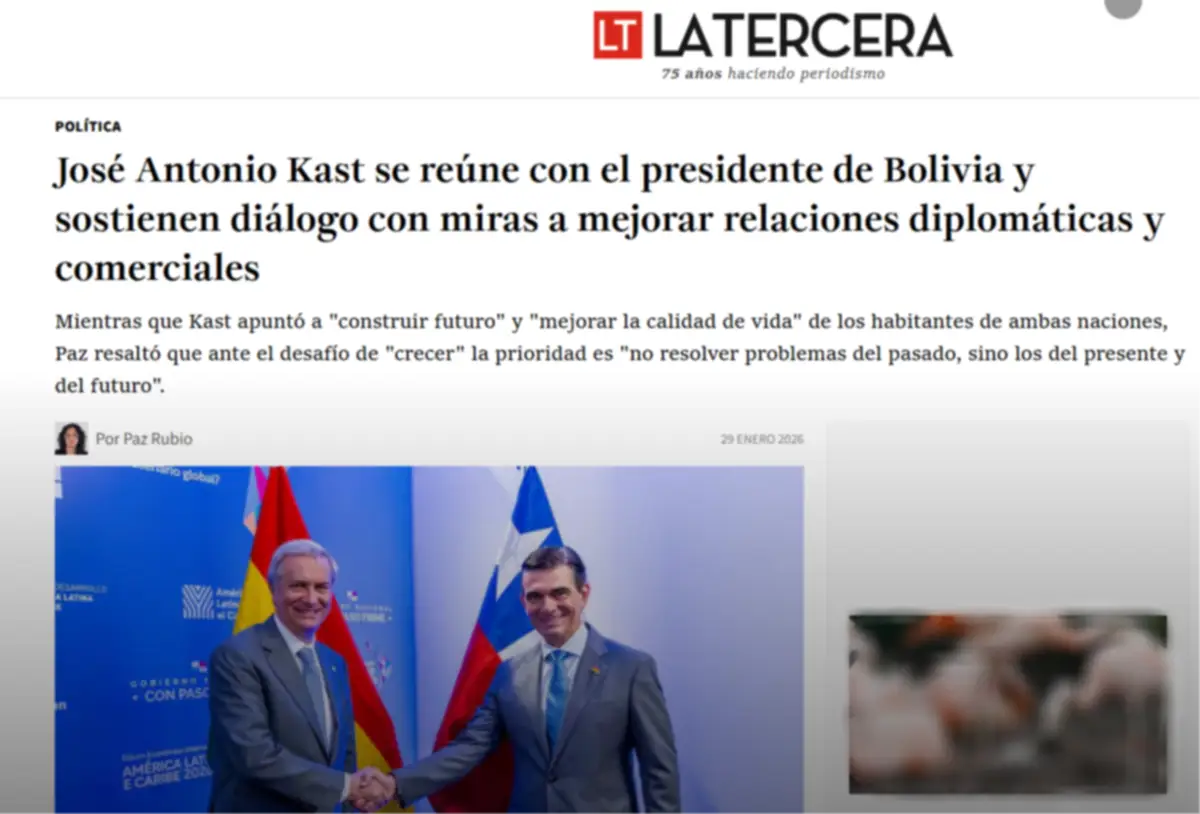 Por su parte, La Tercera tituló: “José Antonio Kast se reúne con el presidente de Bolivia y sostienen diálogo con miras a mejorar relaciones diplomáticas y comerciales”. En su publicación, el diario destacó el énfasis del presidente electo chileno en “construir futuro” y “mejorar la calidad de vida” de los ciudadanos de ambas naciones, en sintonía con el mensaje expresado por Paz.