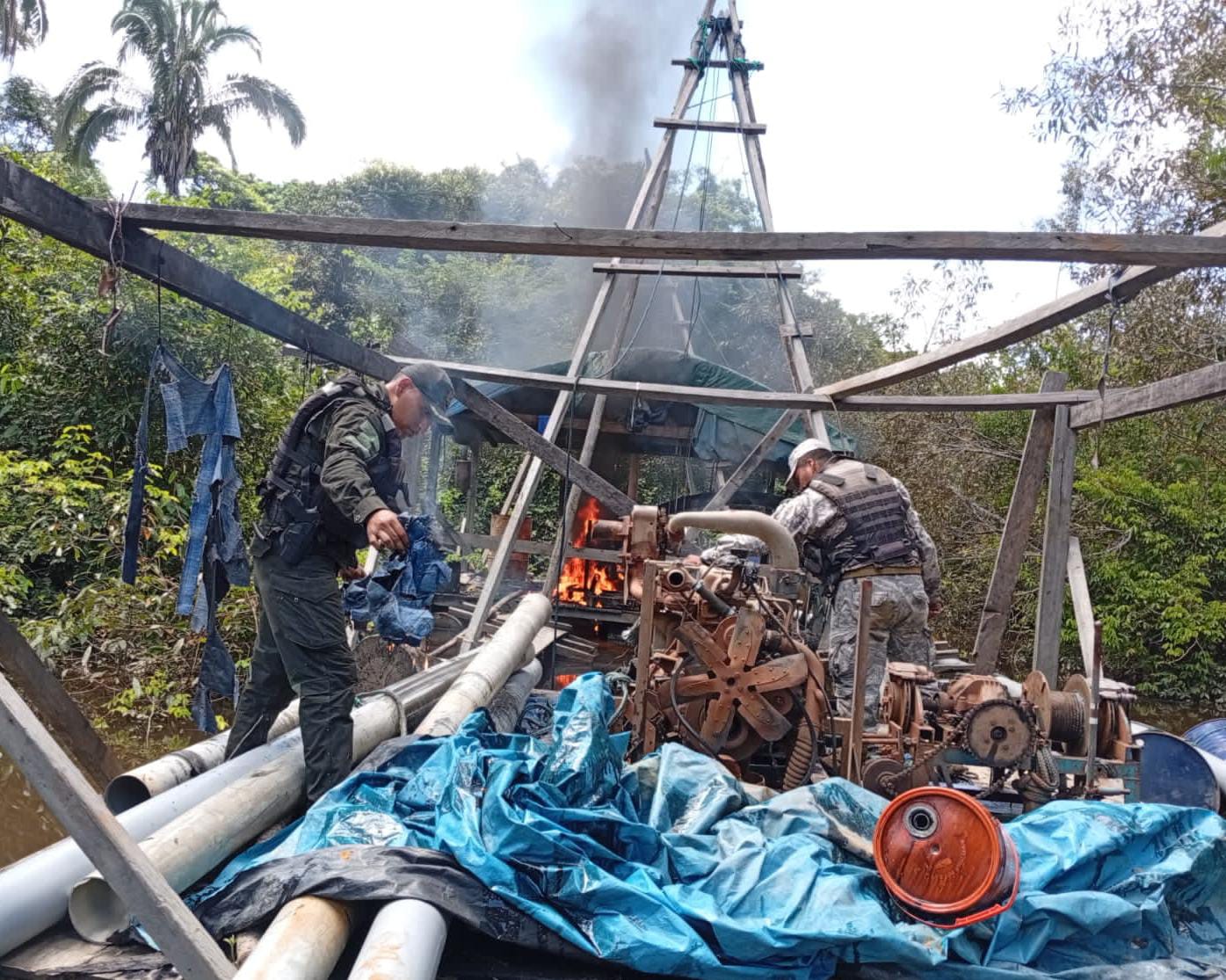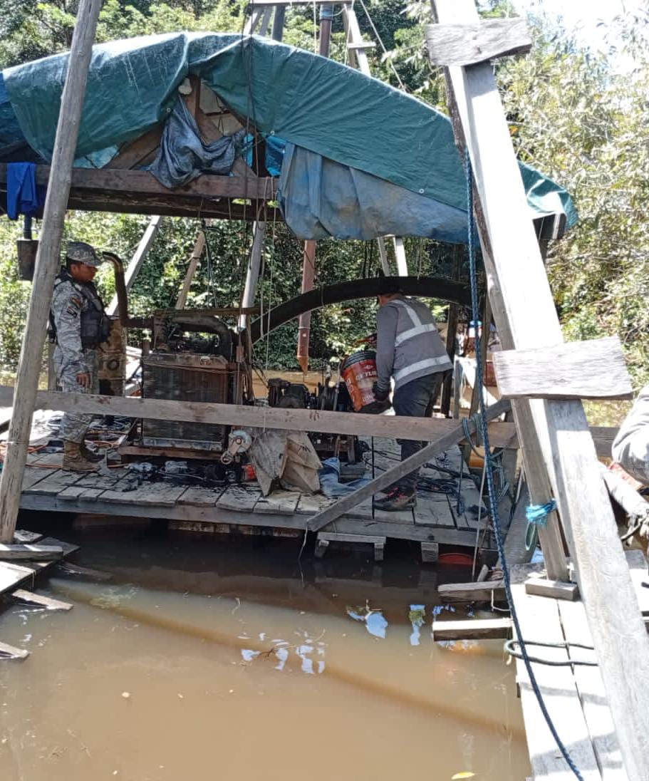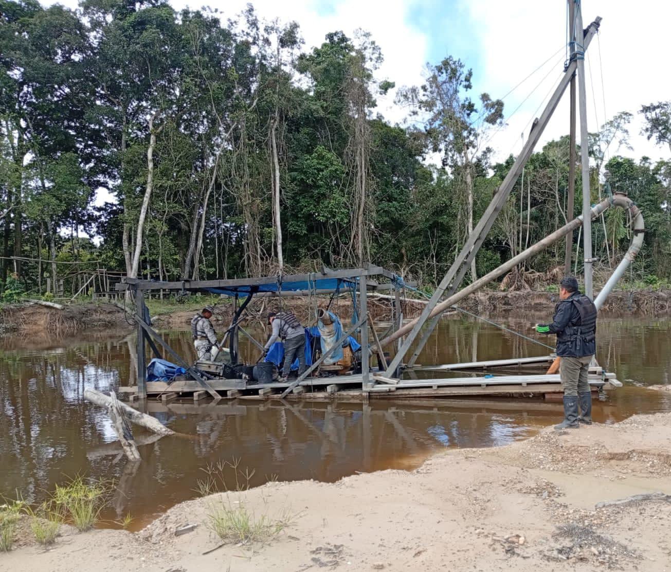 Como resultado de esta intervención, se procedió a la incineración de tres carancheras (pequeñas dragas) utilizadas para el lavado de oro y al comiso de alfombras presuntamente empleadas en la extracción ilegal del mineral, acciones efectuadas en presencia de personeros de la Autoridad Jurisdiccional Administrativa Minera (AJAM) y de la Fiscalía.