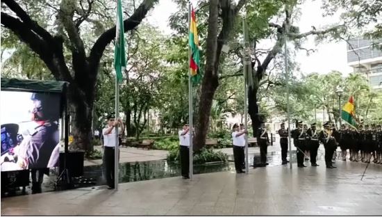 Durante el acto, el comandante departamental de Santa Cruz, coronel Córdova, también rindió homenaje a los hombres y mujeres que vistieron y visten el uniforme verde olivo, en especial a quienes perdieron la vida en cumplimiento del deber.