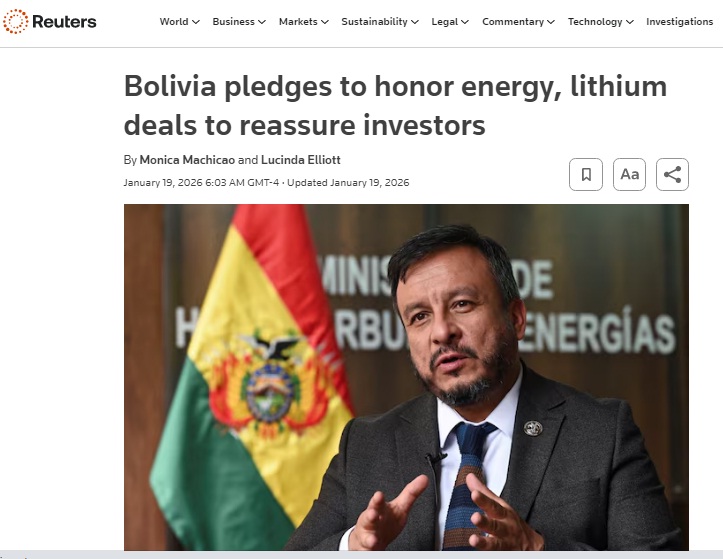En una entrevista con Reuters, Medinaceli señaló que “se respetan los contratos” que el gobierno del expresidente Luis Arce firmó con empresas de China y Rusia.