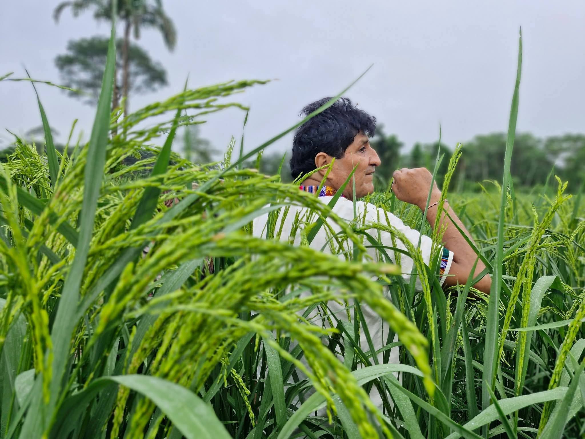 Evo Morales en sus cultivos de arroz en el trópico de Cochabamba, a inicios de mes. Foto: Facebook Evo Morales