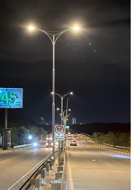 El moderno sistema de iluminación LED de alta eficiencia, posee nuevas luminarias, medidores y cableado eléctrico a lo largo de toda la ruta.