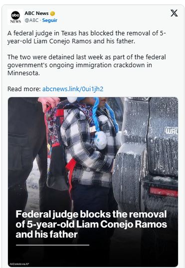 La imagen de la detención de Liam Ramos, de cinco años, por la policía de inmigración estadounidense (ICE) en las afueras de Mineápolis, causó conmoción. Las autoridades escolares afirmaron que los agentes intervinieron cuando el padre del niño lo traía de vuelta de la escuela y lo utilizaron como cebo para atraer a otros miembros de la familia.