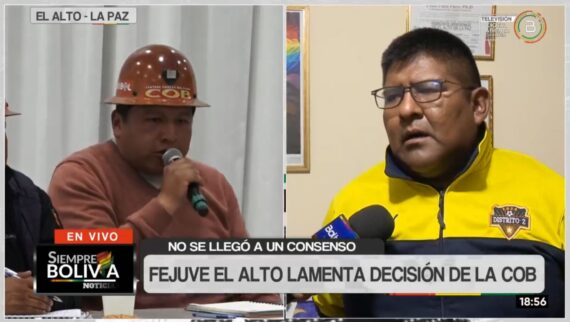 La Federación de Juntas Vecinales (FEJUVE) de El Alto cuestionó hoy (5°) la falta de claridad en las demandas de la Central Obrera Boliviana (COB) durante las masivas movilizaciones contra el Decreto Supremo 5503 y pidió que los dirigentes sindicales prioricen el diálogo sobre la confrontación. El presidente de la FEJUVE, David Callisaya, expresó su desconcierto ante lo que calificó como un mensaje contradictorio y lleno de dudas por parte de la cúpula sindical.
