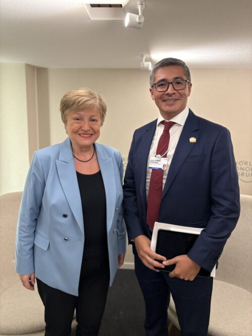 El ministro de Economia, José Gabriel Espinoza, se reunión con la presidenta del FMI, Kristalina Georgieva, en el marco del foro de Davos.
