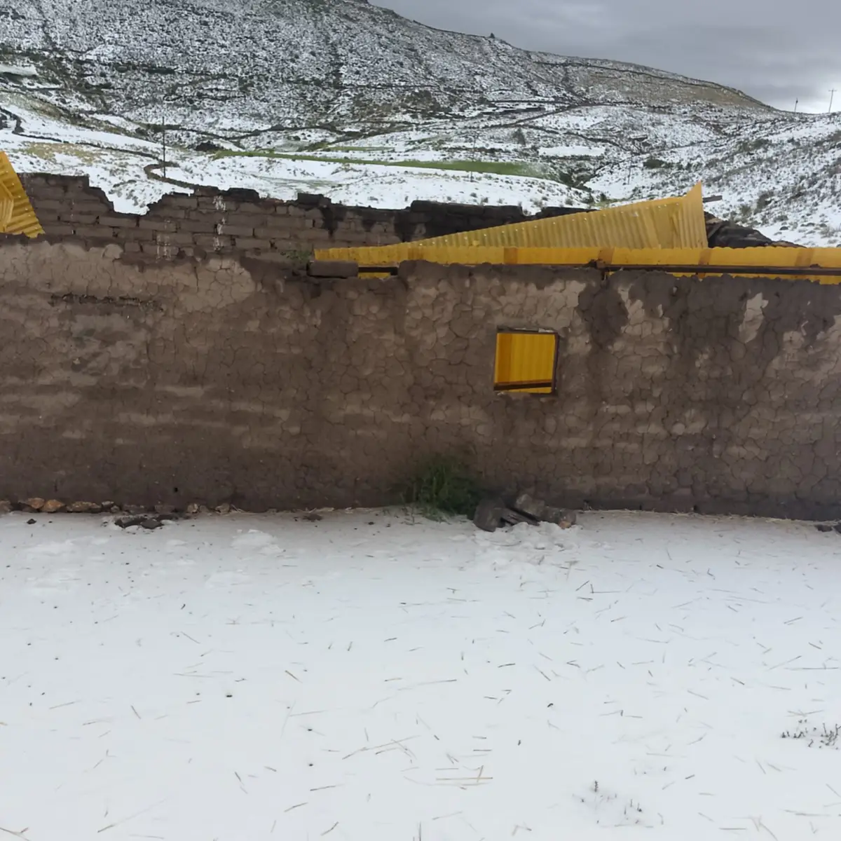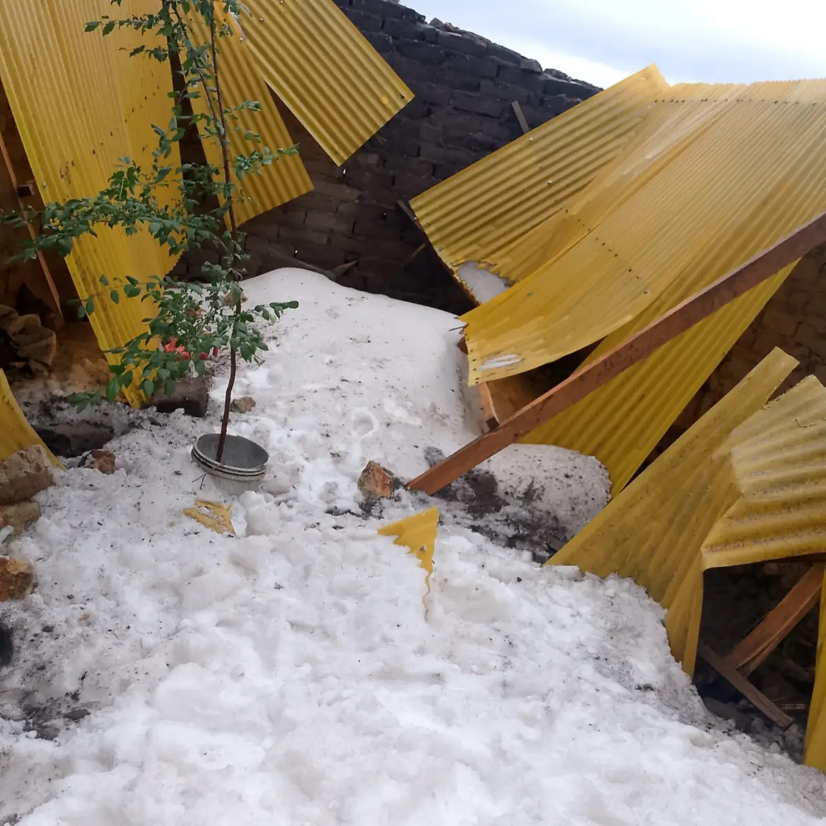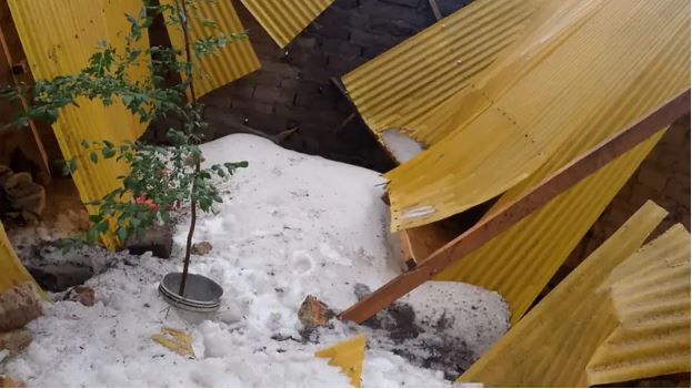 Según las imágenes, se observa que afectó no solo a sembradíos, sino a techos que no soportaron el peso de la granizada y terminaron cediendo.