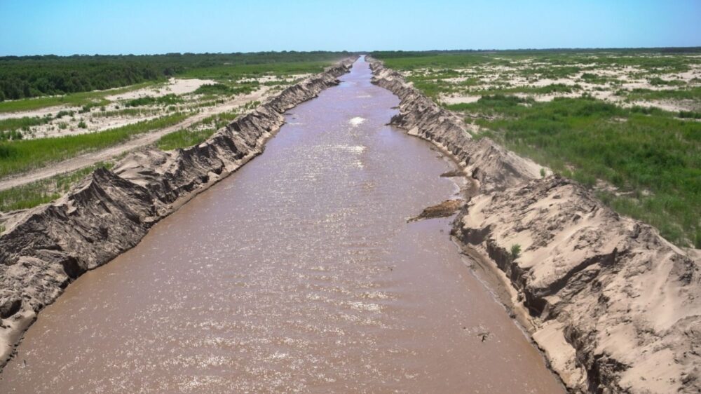 Esta obra busca evitar riesgos ante las crecidas del Río Grande. El canal piloto tiene una longitud de 3.700 metros