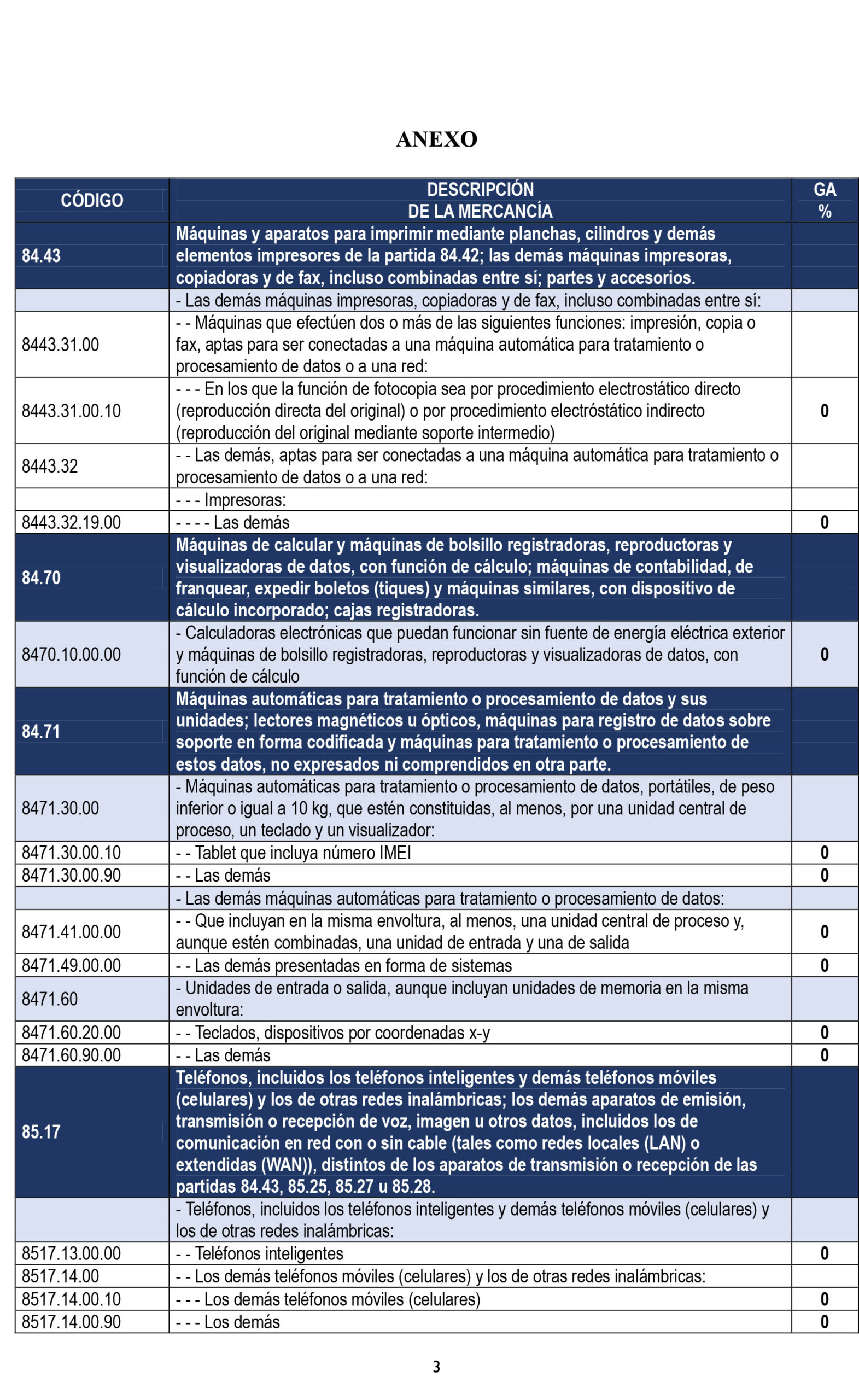 Explicó que «son todos los equipos electrónicos relacionados por ejemplo a comunicación y computación, normalmente los celulares, computadoras, tablets, etc, ya tienen arancel cero».