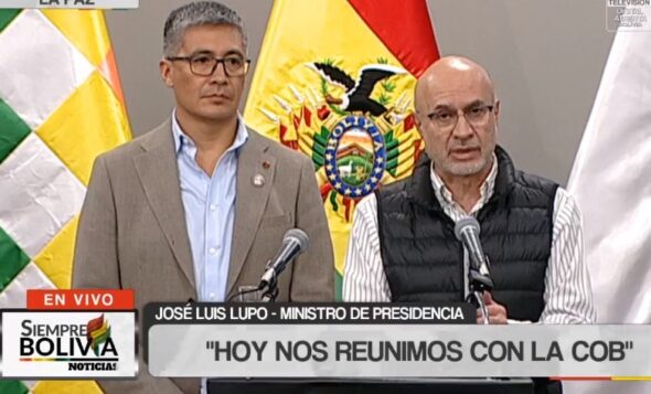 Lupo, junto al ministro de Economía, José Gabriel Espinoza, fijó la posición del Gobierno ante la decisión de la dirigencia de la COB, a la cabeza de Mario Argollo, de romper el diálogo y masificar las protestas y el bloqueo de caminos que perjudica el traslado de familias a sus lugares de destino y el abastecimiento de alimentos.