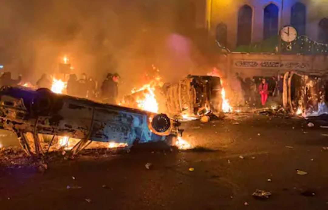 Autos incendiados durante la protestas en Teherán. Foto: Social Media – ZUMA Press Wire