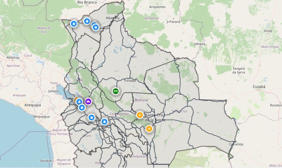 El mapa de transitabilidad de la Administradora Boliviana de Carreteras (ABC), que se habilitó pasadas las 9:00 de este martes, registra nueve puntos de bloqueo en los departamentos de La Paz, Cochabamba y Pando.