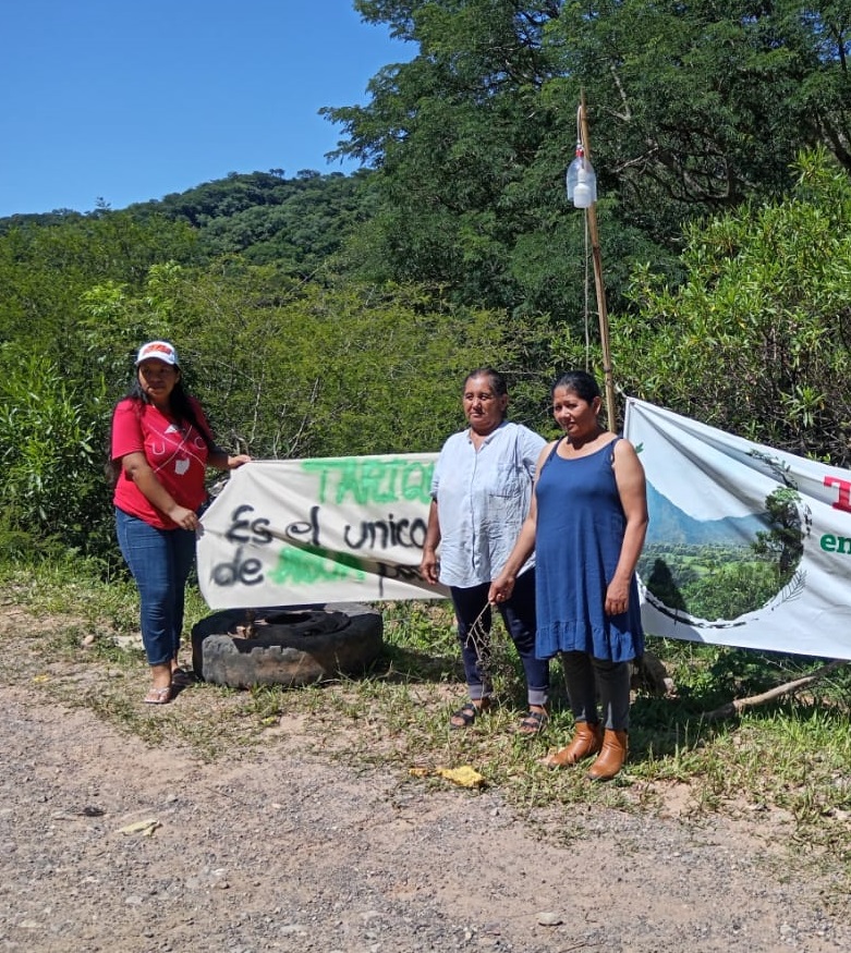 Al ingresar se encuentra la vigilia de las personas que defienden la Reserva Natural de Flora y Fauna Tariquía. En esta ocasión sólo estaban las señoras Juanita, Elizabeth y Yenni, era su turno de vigilar la zona. Ya no ponen resistencia al ingreso de los vehículos, pues en el fondo saben que igual serán rebasadas. Pero están ahí, su sola presencia es parte de la protesta contra la incursión de las empresas petroleras.