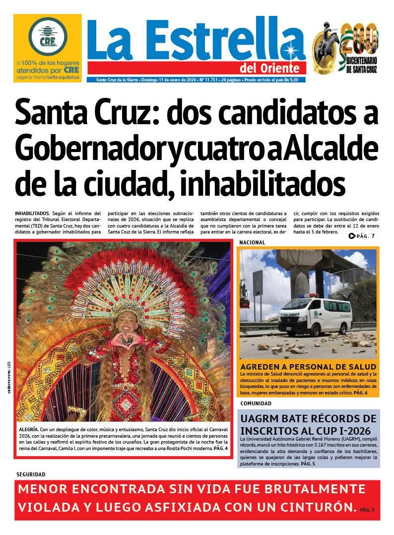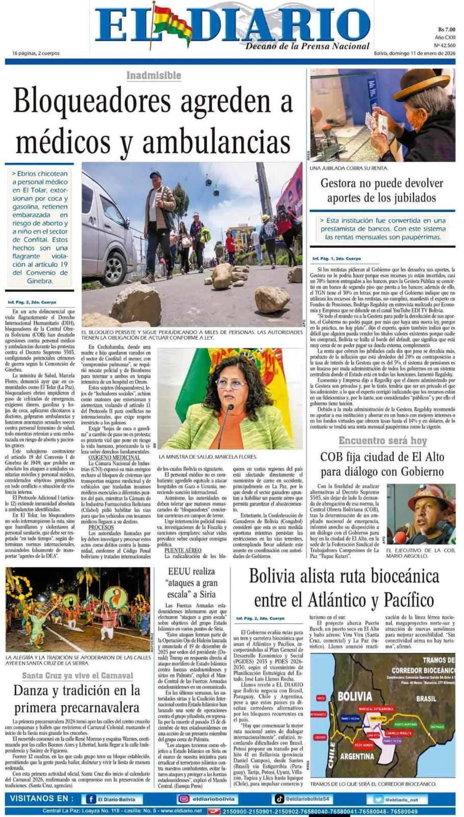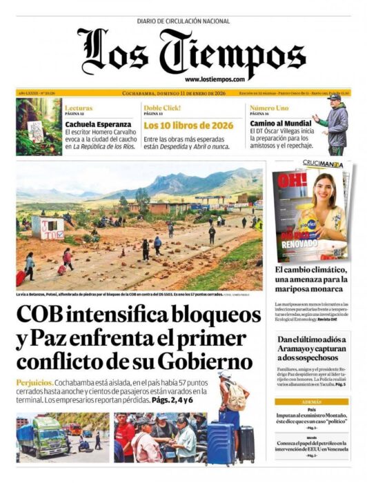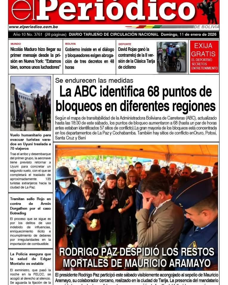 Portadas de los periódicos de Bolivia del domingo 11 de enero del 2026Categorías MonitoreoEtiquetas 11/01/2026 eju.tv
