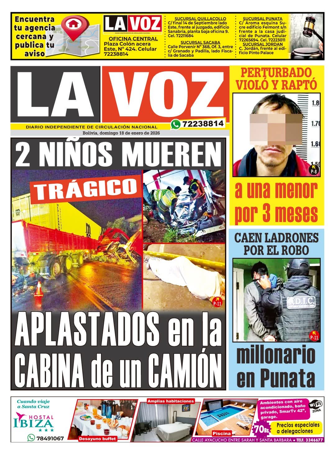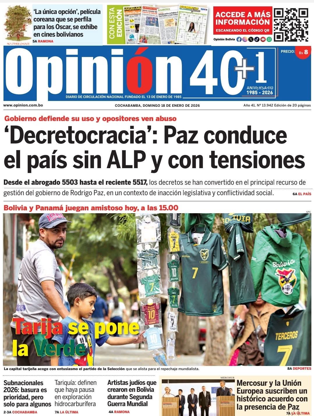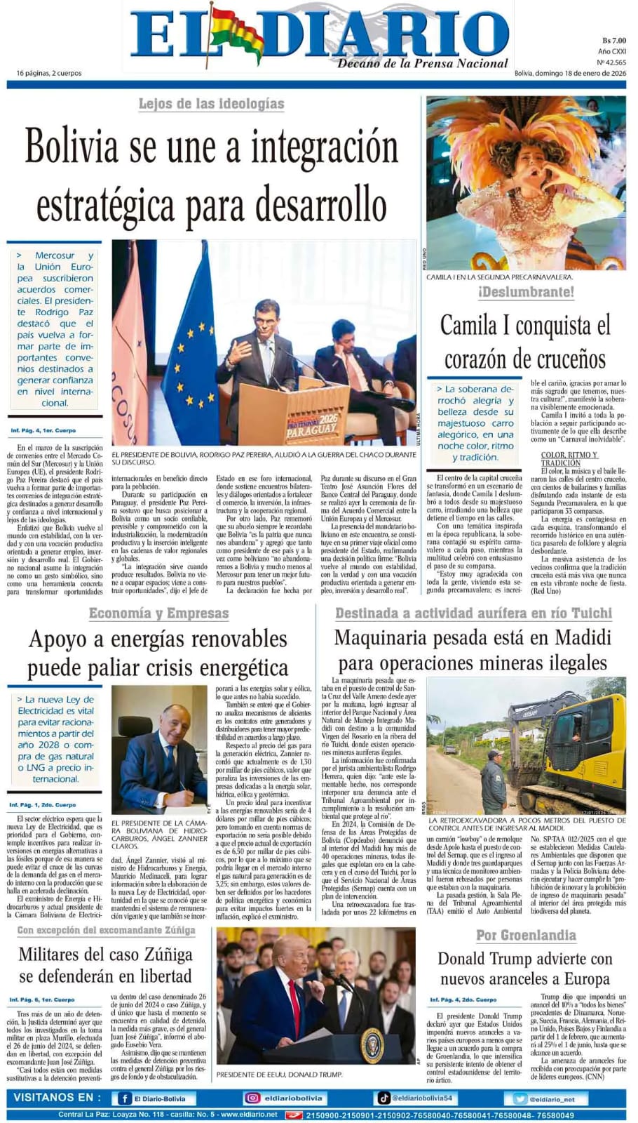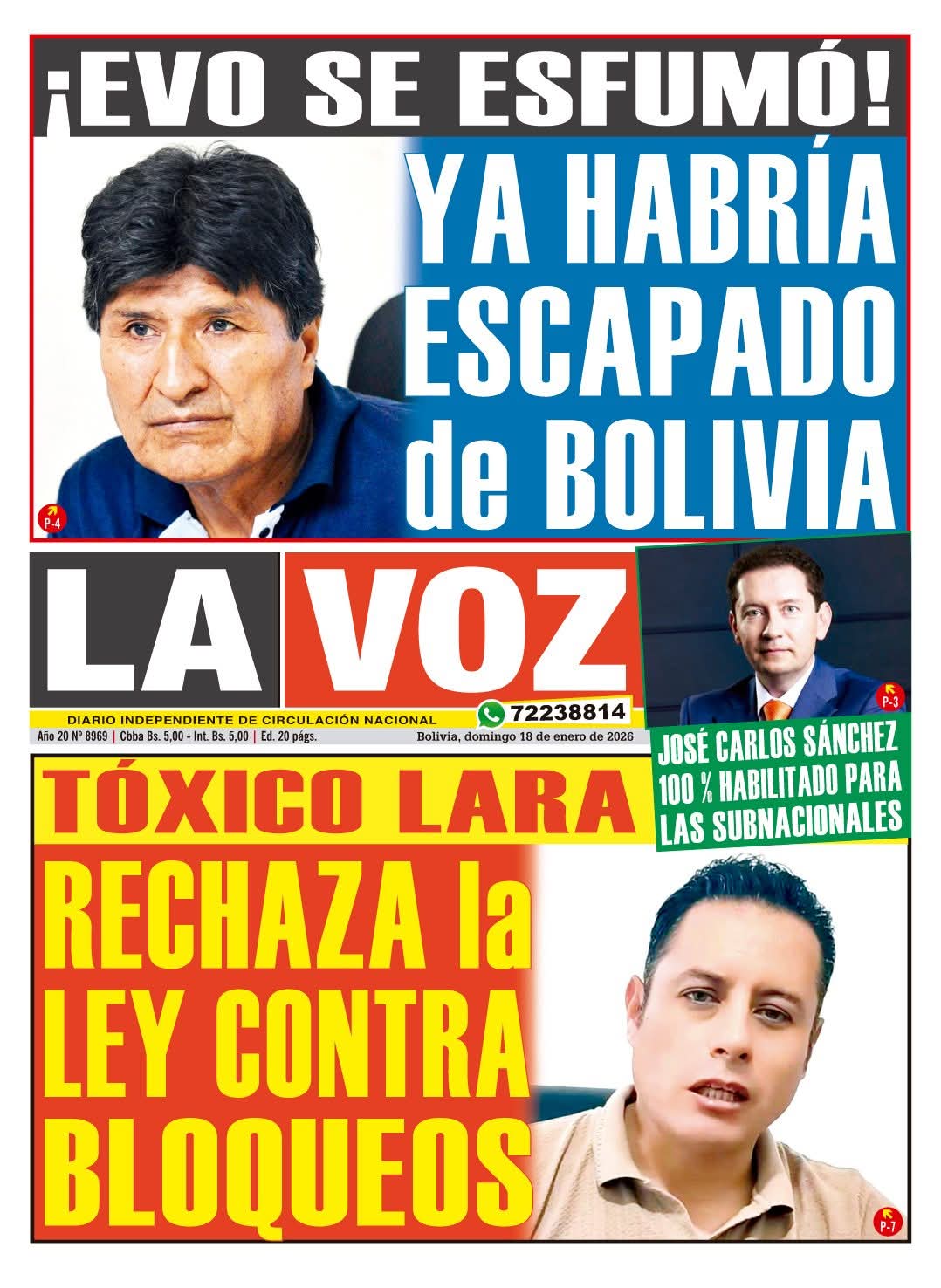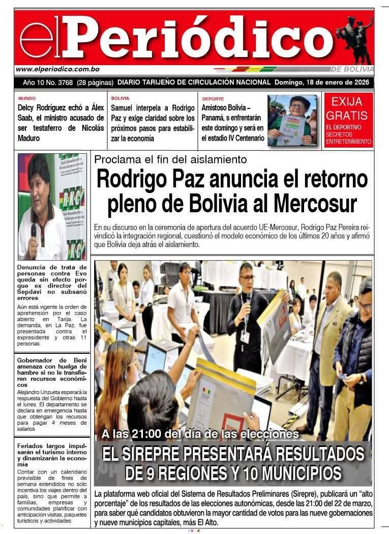 Portadas de los periódicos de Bolivia del domingo 18 de enero del 2026Categorías MonitoreoEtiquetas 18/01/2026 Fuente: eju.tv eju.tv