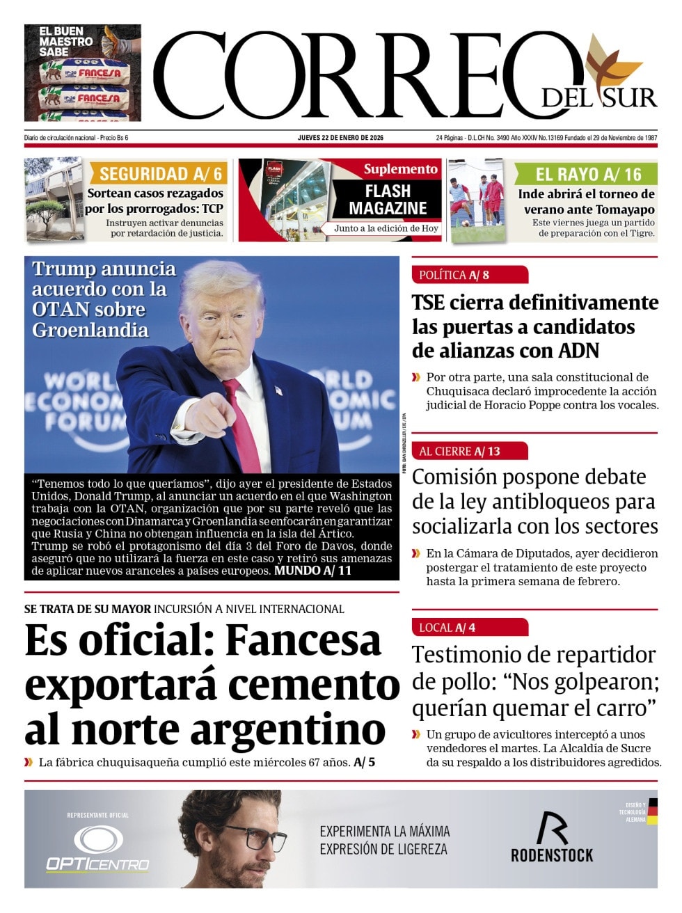 Fuente: El Deber, El Día, Zona Norte, La Palabra, La Razón, El Alteño, La Prensa, Ahora El Pueblo, La Estrella del Oriente, El Mundo, Los Tiempos, La Voz, Contraparte, Andaluz, El Potosí, Correo del Sur, El País, El Periódico,, Amitel Pres, Opinión, Caja Negra, Novavox.