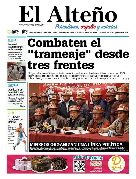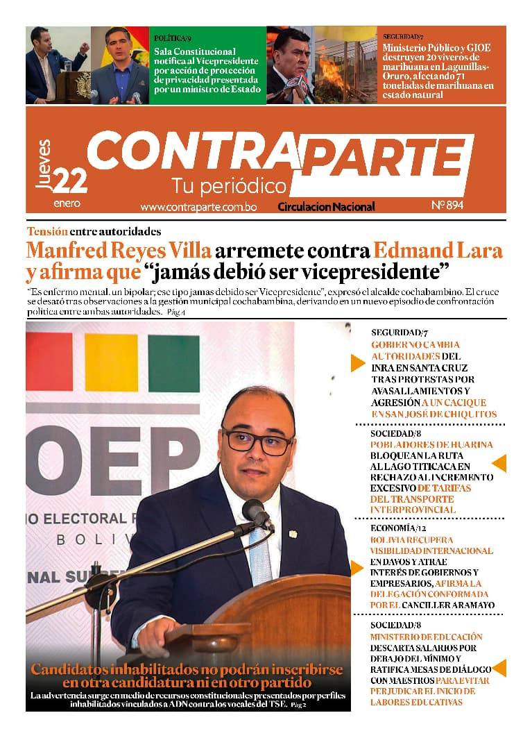 Fuente: El Deber, El Día, Zona Norte, La Palabra, La Razón, El Alteño, La Prensa, Ahora El Pueblo, La Estrella del Oriente, El Mundo, Los Tiempos, La Voz, Contraparte, Andaluz, El Potosí, Correo del Sur, El País, El Periódico,, Amitel Pres, Opinión, Caja Negra, Novavox.