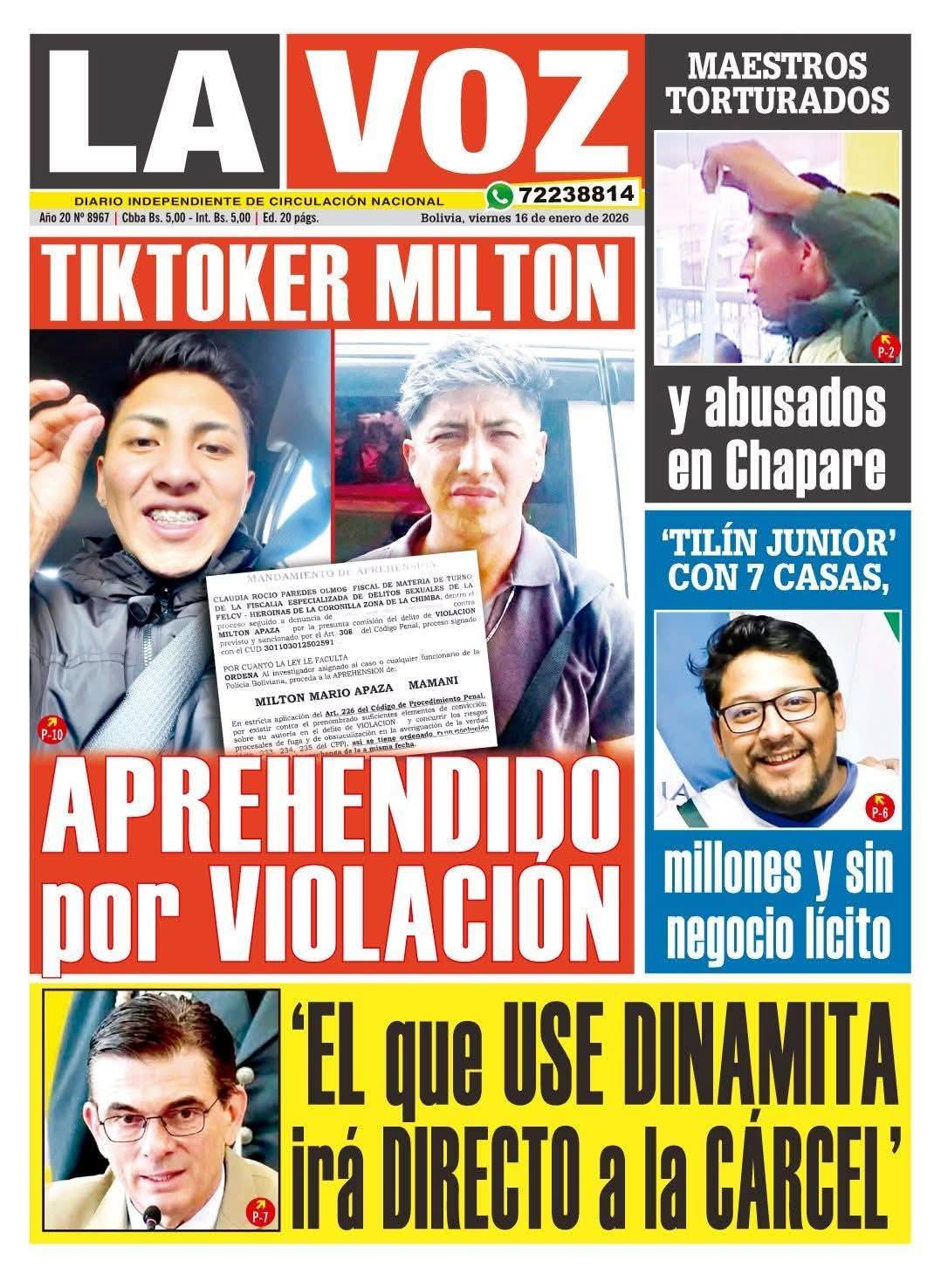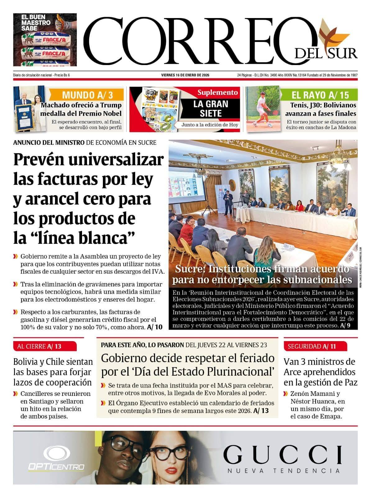 Fuente: El Deber, El Día, Zona Norte, La Palabra, La Razón, El Alteño, La Prensa, Ahora El Pueblo, La Estrella del Oriente, El Mundo, Los Tiempos, La Voz, Contraparte, Andaluz, El Potosí, Correo del Sur, El País, El Periódico, El Diario, Amitel Pres, Opinión, Caja Negra, Novavox.