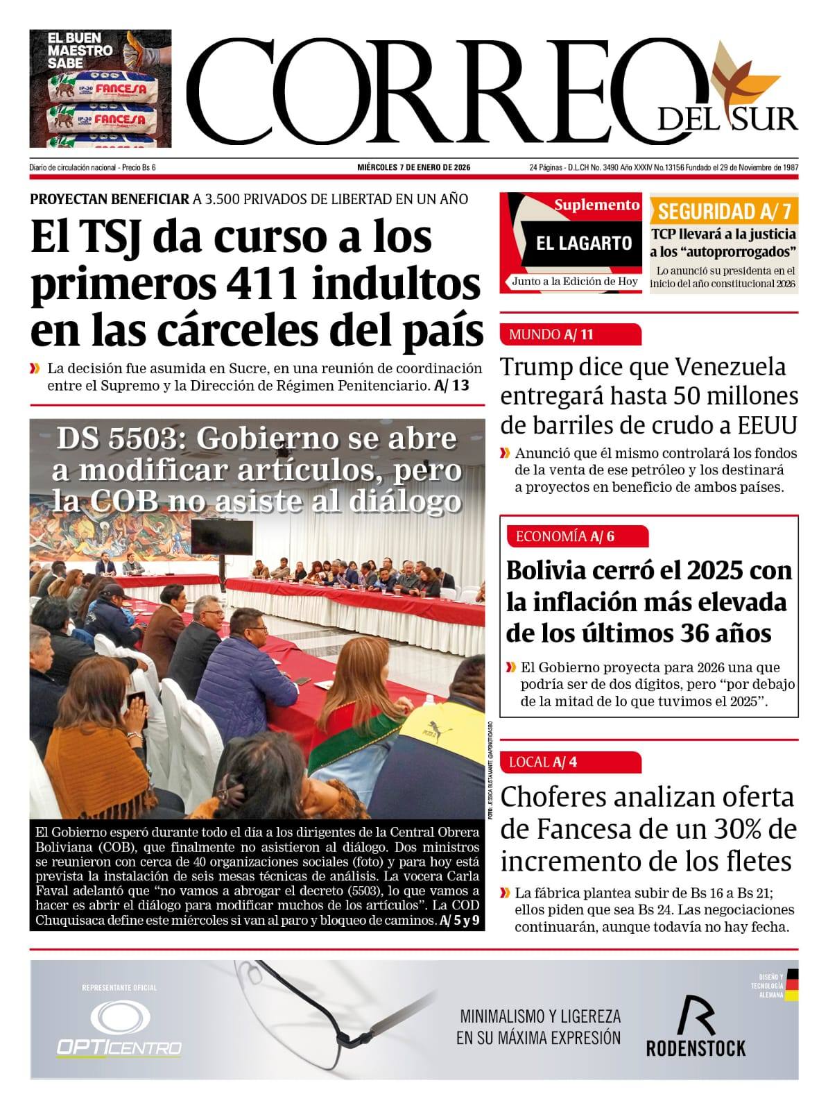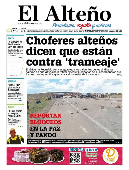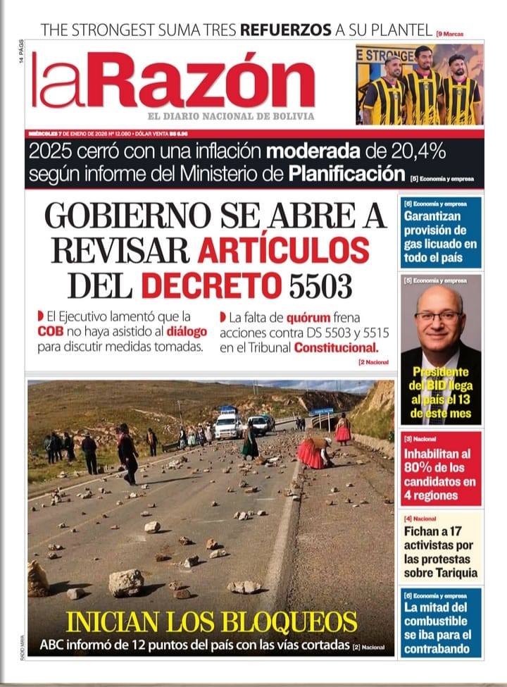 Fuente: El Deber, El Día, Zona Norte, La Palabra, La Razón, El Alteño, La Prensa, Ahora El Pueblo, La Estrella del Oriente, El Mundo, Los Tiempos, La Voz, Contraparte, Andaluz, El Potosí, Correo del Sur, El País, El Periódico, El Diario, Amitel Pres, Opinión, Caja Negra, Novavox.