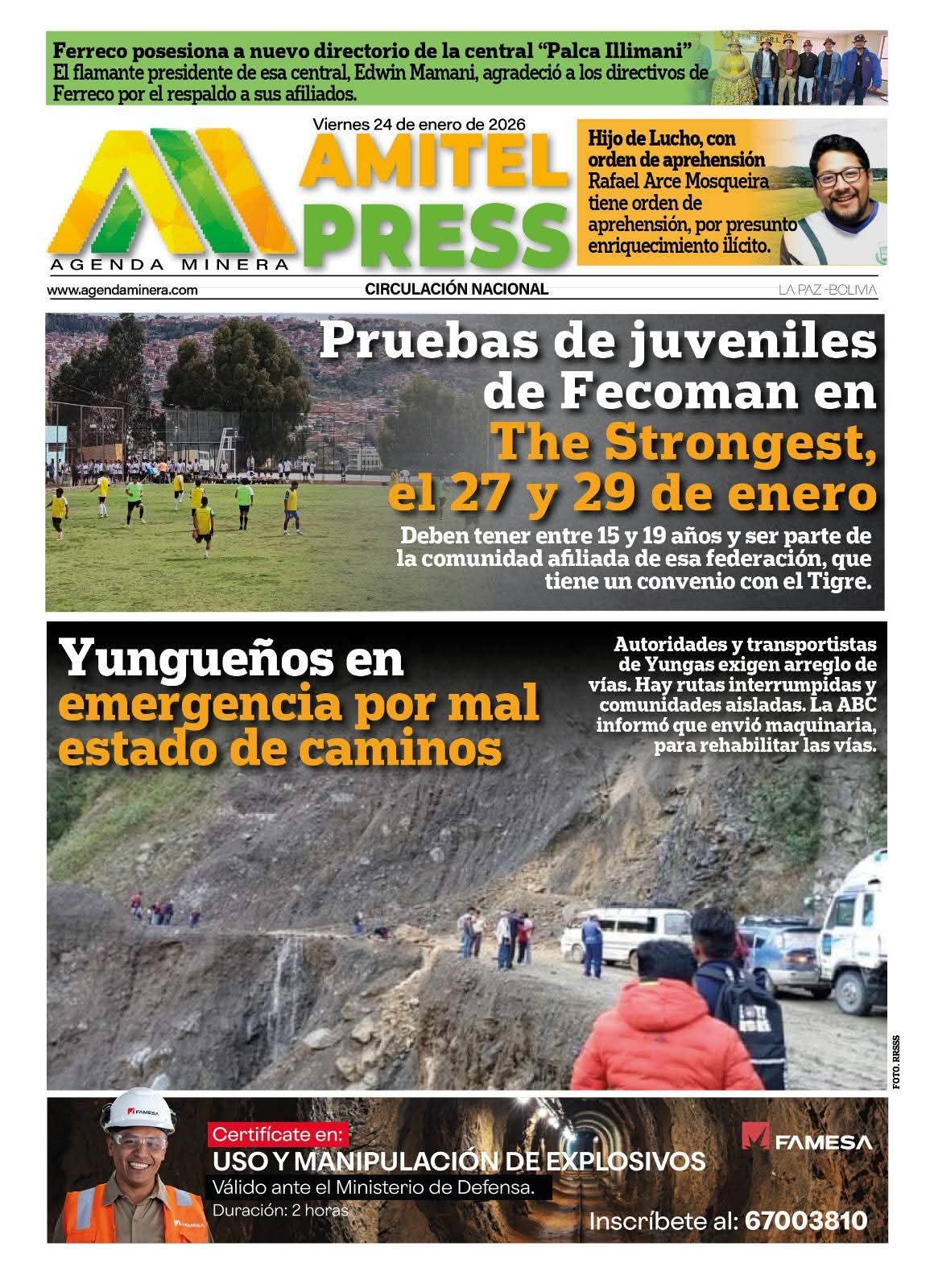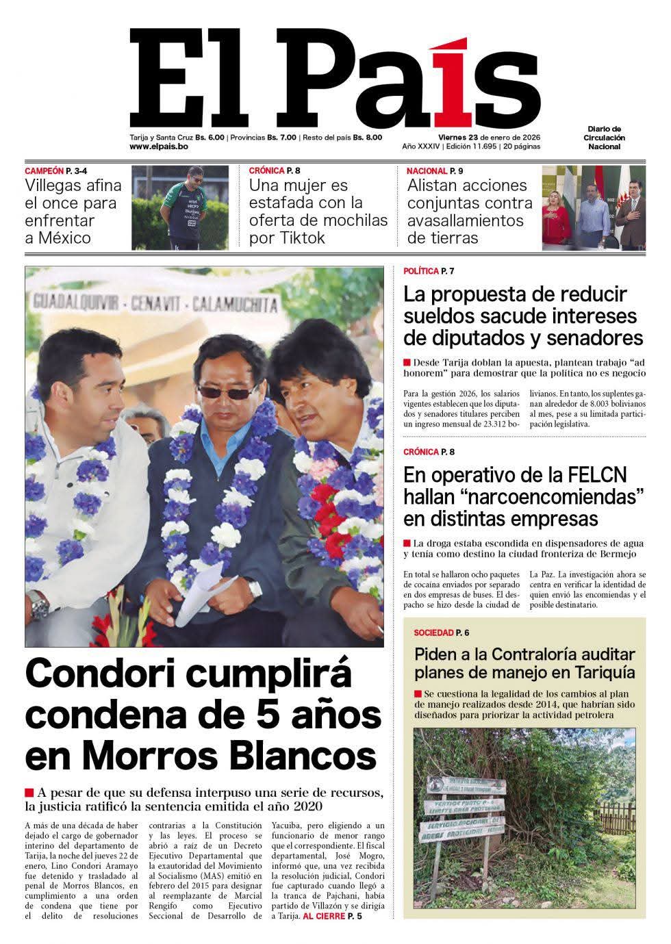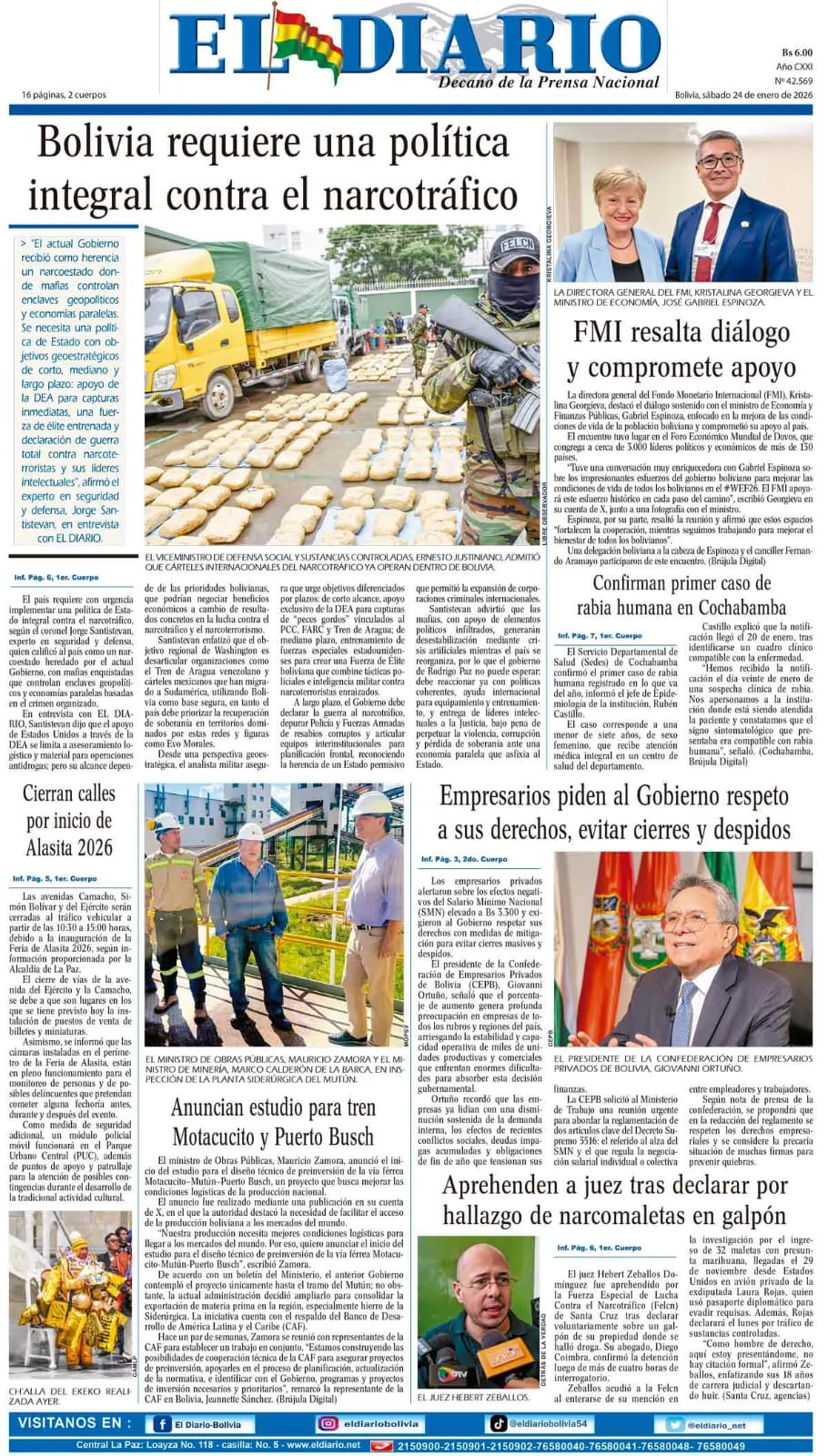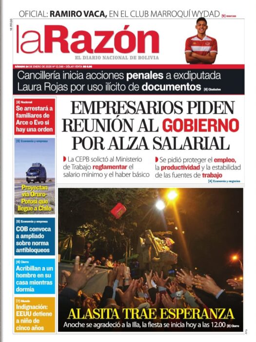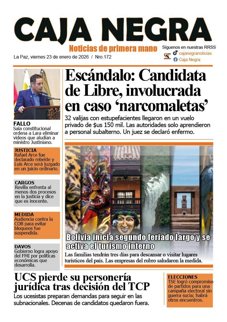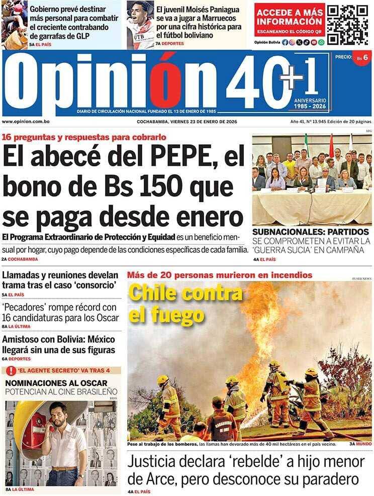 Portadas de los periódicos de Bolivia del sábado 24 enero del 2026