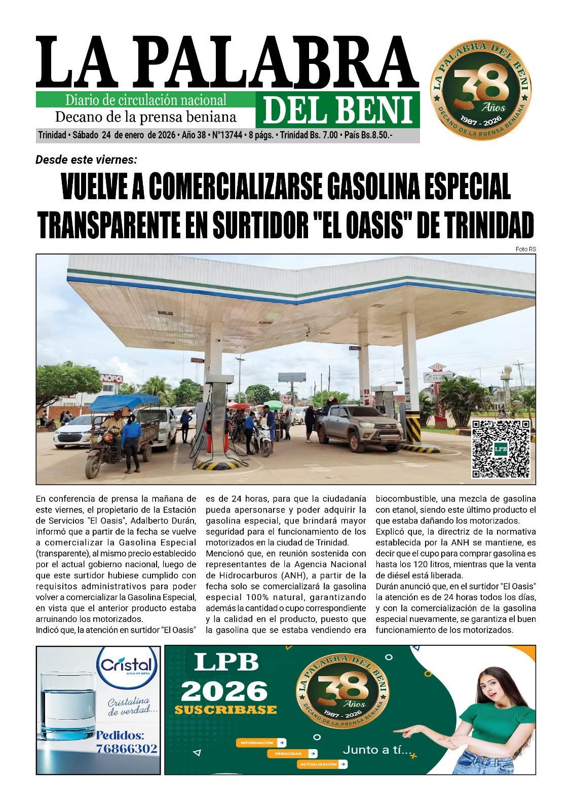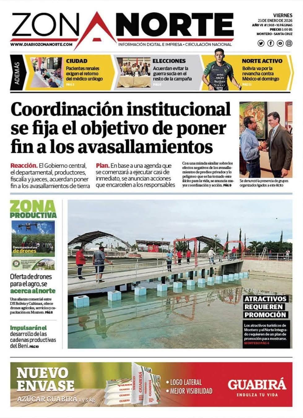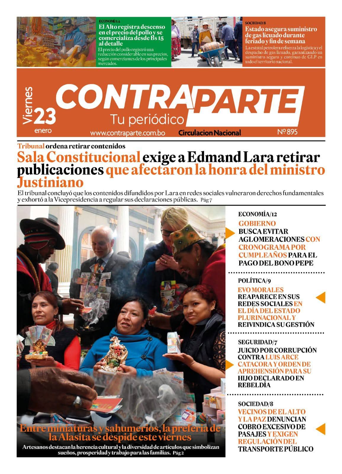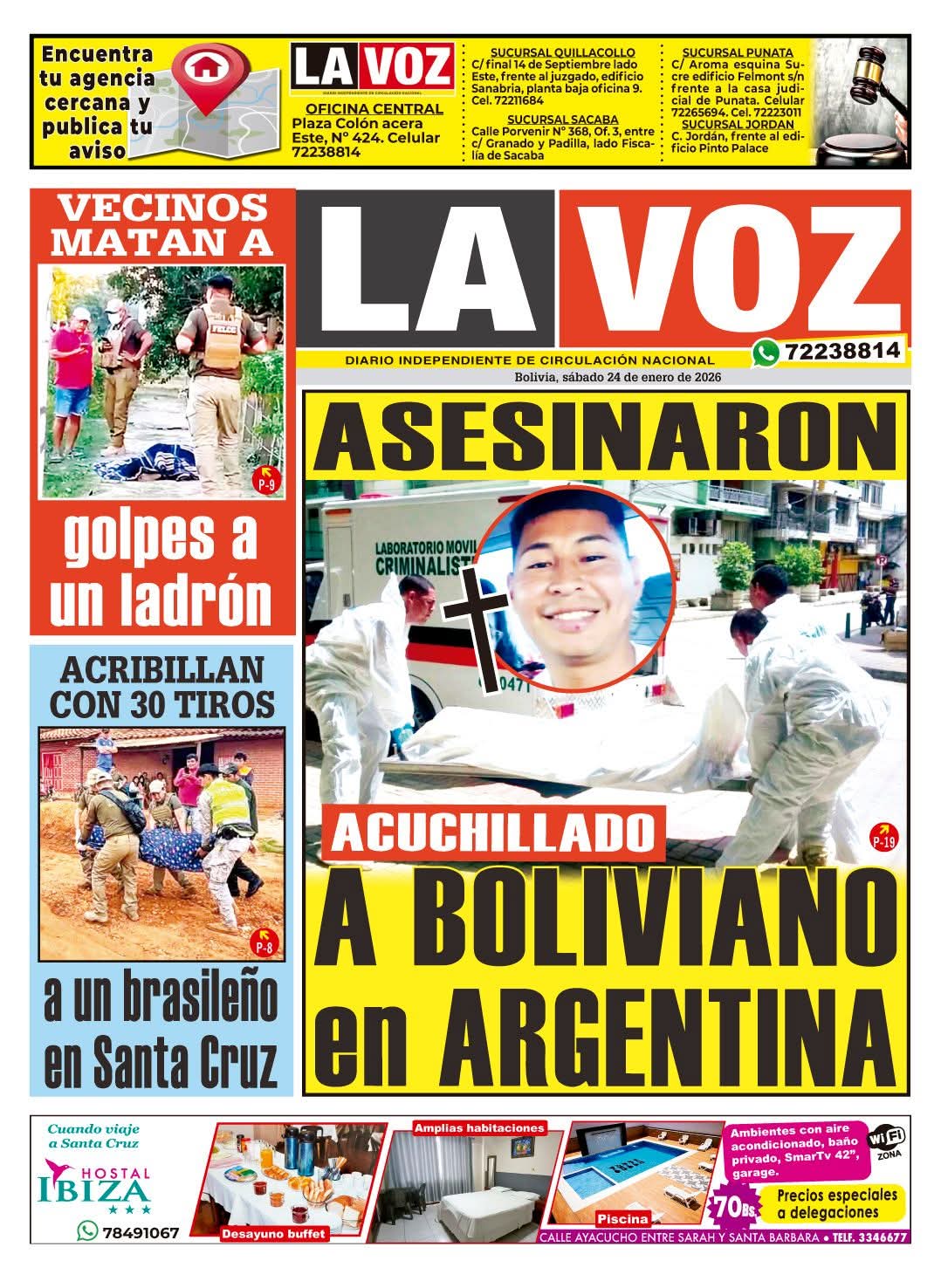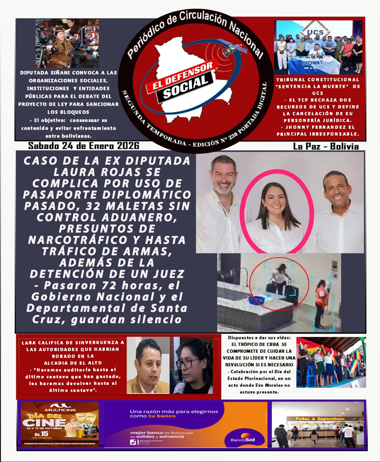 Portadas de los periódicos de Bolivia del sábado 24 enero del 2026