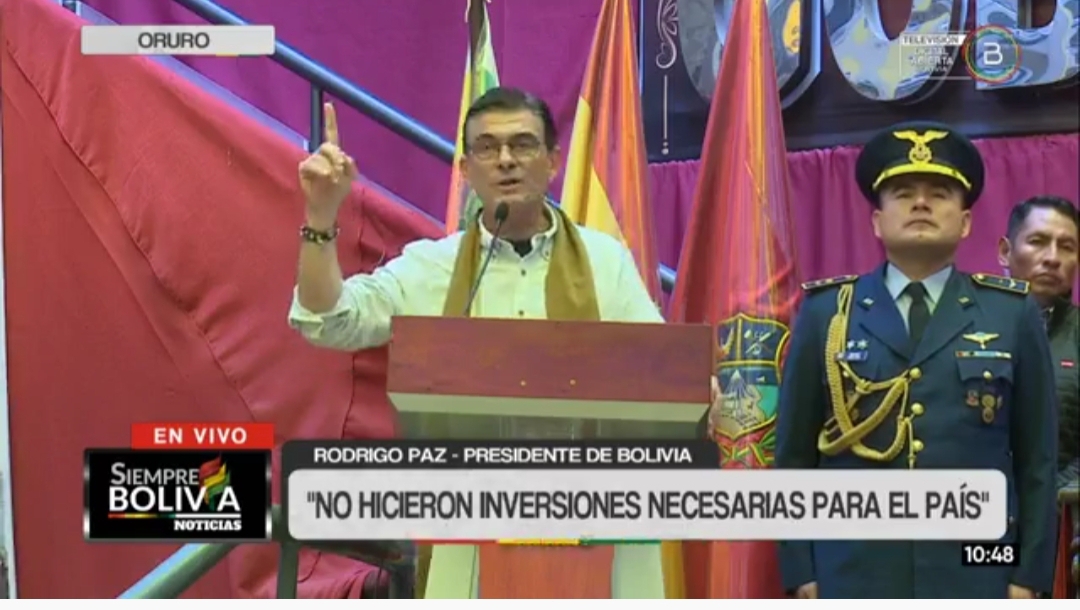 Desde la ciudad de Oruro, el presidente Rodrigo Paz propuso impulsar un diálogo nacional para conocer a detalle la situación real del país y trabajar de forma conjunta en poner a la patria de pie.