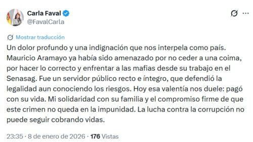 «Hoy esa valentía nos duele: pagó con su vida. La lucha contra la corrupción no puede seguir cobrando vidas», expresó la vocera, quien además manifestó su solidaridad con la familia de la víctima y aseguró un compromiso firme para que este crimen no quede en la impunidad.