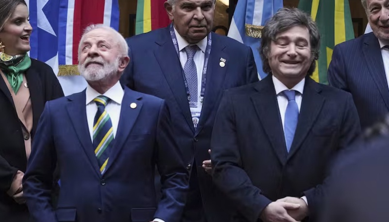 Luiz Inacio Lula da Silva y Javier Milei, durante la última reunión del Mercosur en Foz de Iguazú. Foto: Natacha Pisarenko – AP