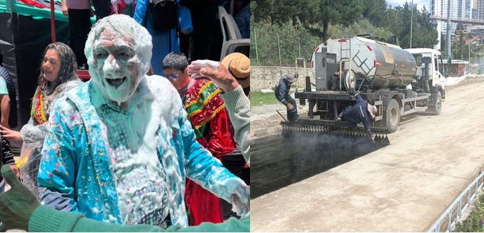 “En Carnaval trabajamos con amor y sin parar”, señala el mensaje difundido por la comuna paceña, destacando que, mientras se impulsan actividades como el corso infantil y el desfile de pepinos, también se prioriza la ejecución de las denominadas “súper obras” para beneficio de la ciudadanía.