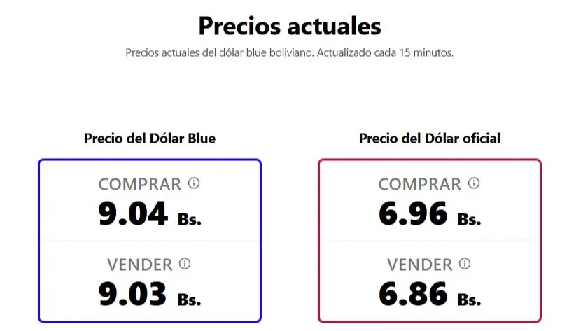 Por su parte, el denominado dólar blue, reportado por bolivianblue.net, también mostró pequeños movimientos dentro del mercado informal, situándose en Bs 9,03 para la venta y Bs 9,04 para la compra. Aunque los valores se mantienen en un rango similar, existen ligeras diferencias entre las plataformas de referencia.