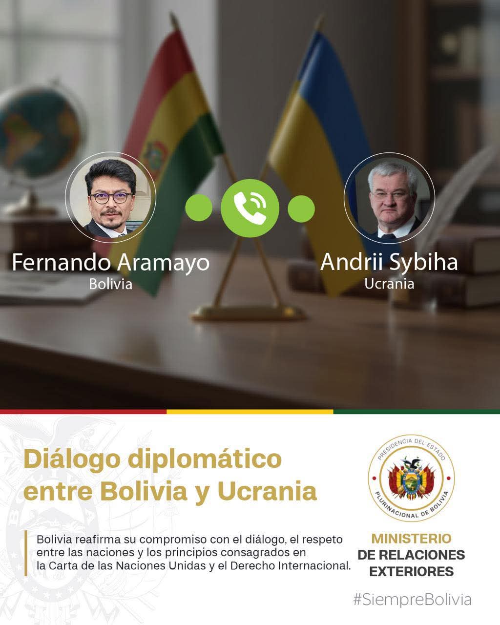 Según el jefe de la diplomacia ucraniana, agradeció a Aramayo, a quien invitó a visitar Kiev, “la solidaridad de Bolivia con Ucrania y su pueblo”.