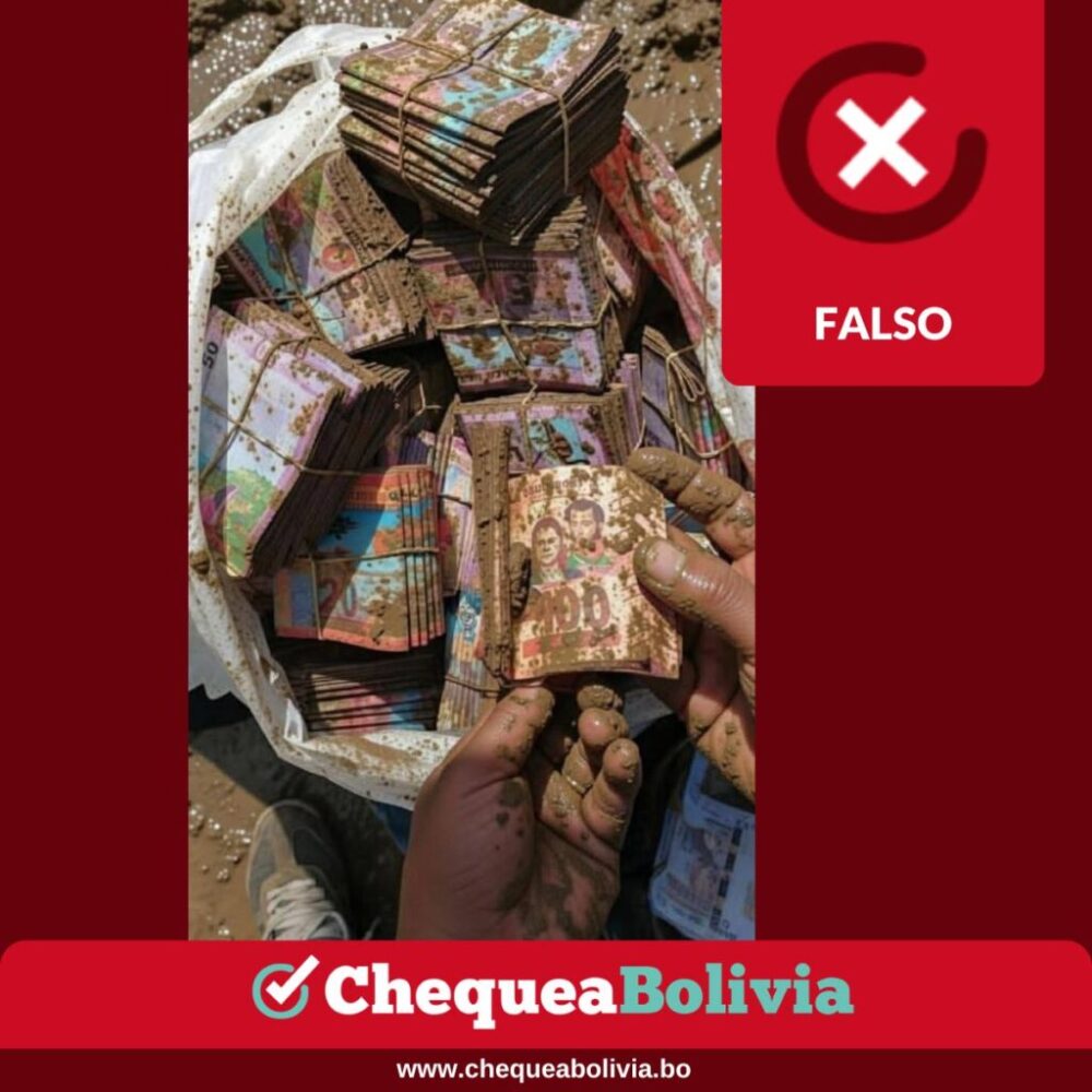 La fotografía que circula en redes sociales mostrando supuestos billetes enlodados vinculados con la tragedia aérea ocurrida en El Alto es falsa y fue generada mediante inteligencia artificial, informó la verificador Chequea Bolivia