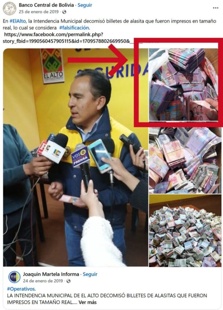 La fotografía difundida como si correspondiera a dinero recuperado tras el accidente también fue publicada durante una publicación de una inspección municipal realizada durante la festividad de Alasitas y estaba relacionada con la revisión de billetes utilizados en esa celebración tradicional.