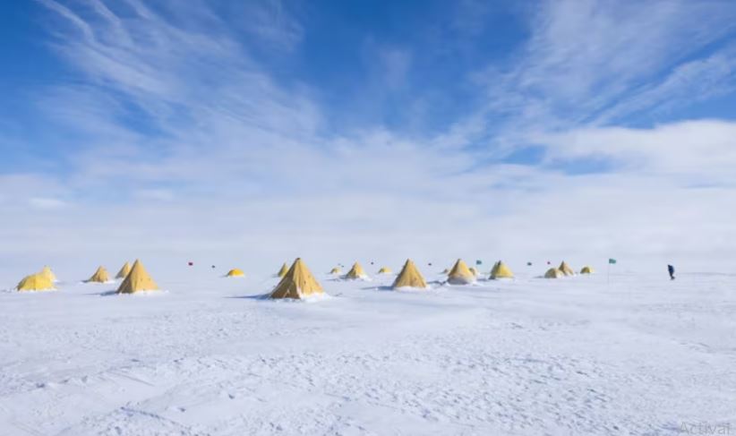 Para alcanzar el subsuelo, el equipo abrió primero un pozo de 523 metros a través del hielo mediante un taladro de agua caliente y después instaló una plataforma geológica para extraer el núcleo de sedimento.